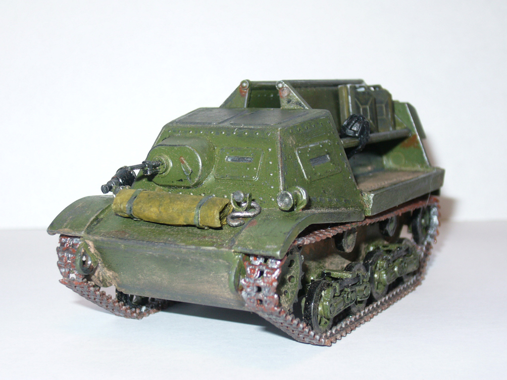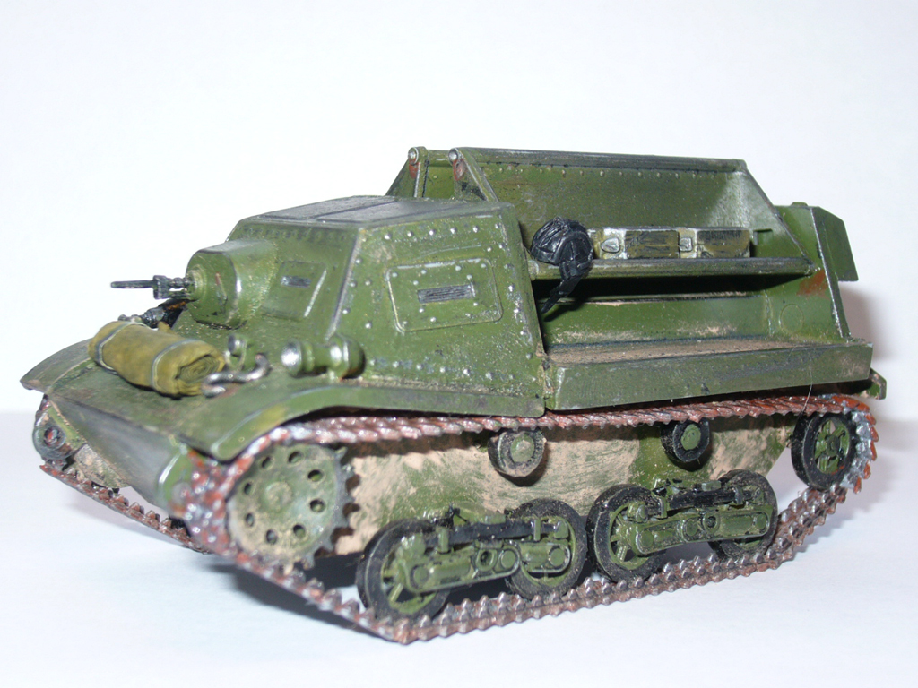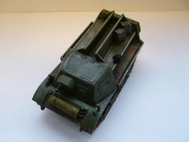 Модель от ВЭ, собиралась просто жуть, сколько ушло времени и не припомню. Пилению подверглись практически все детали. Качество пластика - мрак:-(, хрупкий, ломается при малейшей нагрузке) Все оси для крепления катков сделаны из медной проволоки,