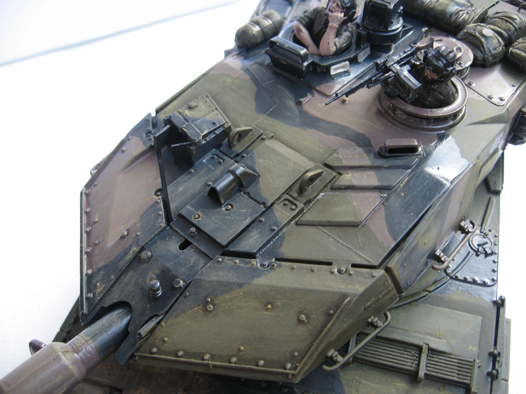 В цвета не попал очень сильно,да итак модель очень неаккуратна.Декали очень сильно блестят,типы не в тему лучше бы без них.Сзади слева под фарами красная краска,скатки и рюкзаки лучше бы использовал на мардере,на лео они не нужны,еще не очень понравились триплексы