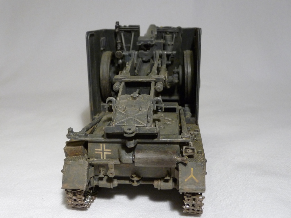 Собрал, наконец-то! Долго с ним возился, детали плохонького качества были, особенно большие-с утяжинами и облоем. Покраска кистью, акрил Тамия, лак матовый, тонировка- немного акрилом, пигменты Тамия. Не из коробки только тросс самодельный. Самоходная 150-мм гаубица SlG-33 (Sf) на базе танка Т-1 из состава 1-й танковой дивизии, воевавшей осенью 1941 г. под Ржевом. Почти все такие машины там и остались. Обескровленную дивизию после боев под Ржевом вывели во Францию на отдых и переформирование. Советуйте,что не так,что так,что поправить.