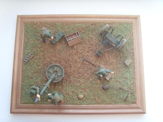 Как-то пустынно на диораме. Это что тундра? Тогда где карликовые березки? Серьёзно - растительность бы оживила пейзаж, одного какао с укропом маловато. И рельефа нет, почему бы не соорудить какой-нибудь окопчик?