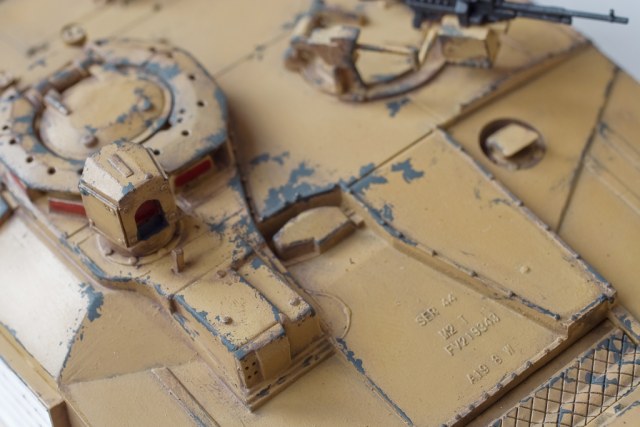 Нижнюю часть корпуса нужно слегка запылить. Ведь танк в пустыне использовался, так что хочется вам это или нет, но пыль/песок должен присутствовать.