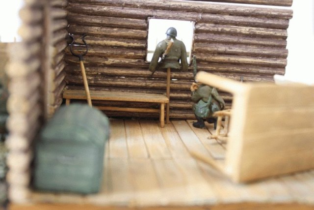 Спасибо всем откликнувшимся. В общем я рад оценкой моей диорамы, вся критика была по делу,но два бревна сверху избы я всё же сам сдвинул для антуража(т.к. на диораме я показал не всю избу,а её виртуальную половину и без крыши,чтобы показать весь интерьер).