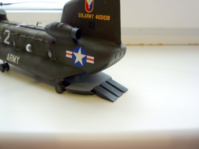 на счет декалей, пока нет Gorg, попробую ответить я. Автор выполнил все совершенно правильно согласно приложенной в набор схемы (такой же набор лежит в коробке), в инете фото доказательств не смог быстро найти, зато обратясь к книге "Вертолеты" Роберта Джексона на первом же развороте о "Чинуках" представлены три фото именно "А"-х вариантов вертолета, с большими эмблемами по бортам и малой на крыше.
