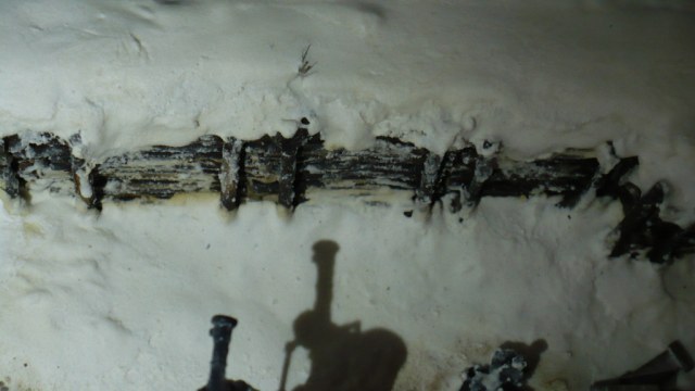 Затем пошёл во двор и насобирал берёзовых прутиков, достаточно тонких, и за два вечера сделал... опалубку стенок окопа. Брёвнышки даже красить не пришлось. Снег-смесь ПВА, соды, белой краски АКАН и воды. Наносился снег в три слоя, чтоб всё хорошо было покрыто.Снег тонирован масляными красками: там где следы от ног.