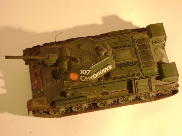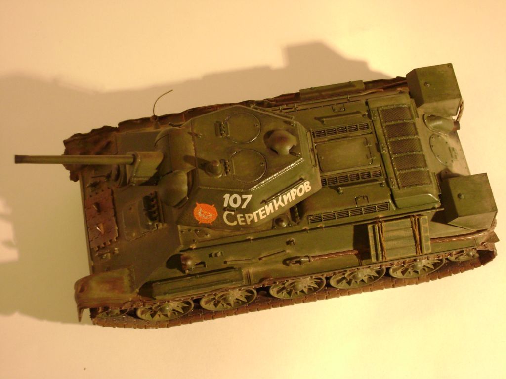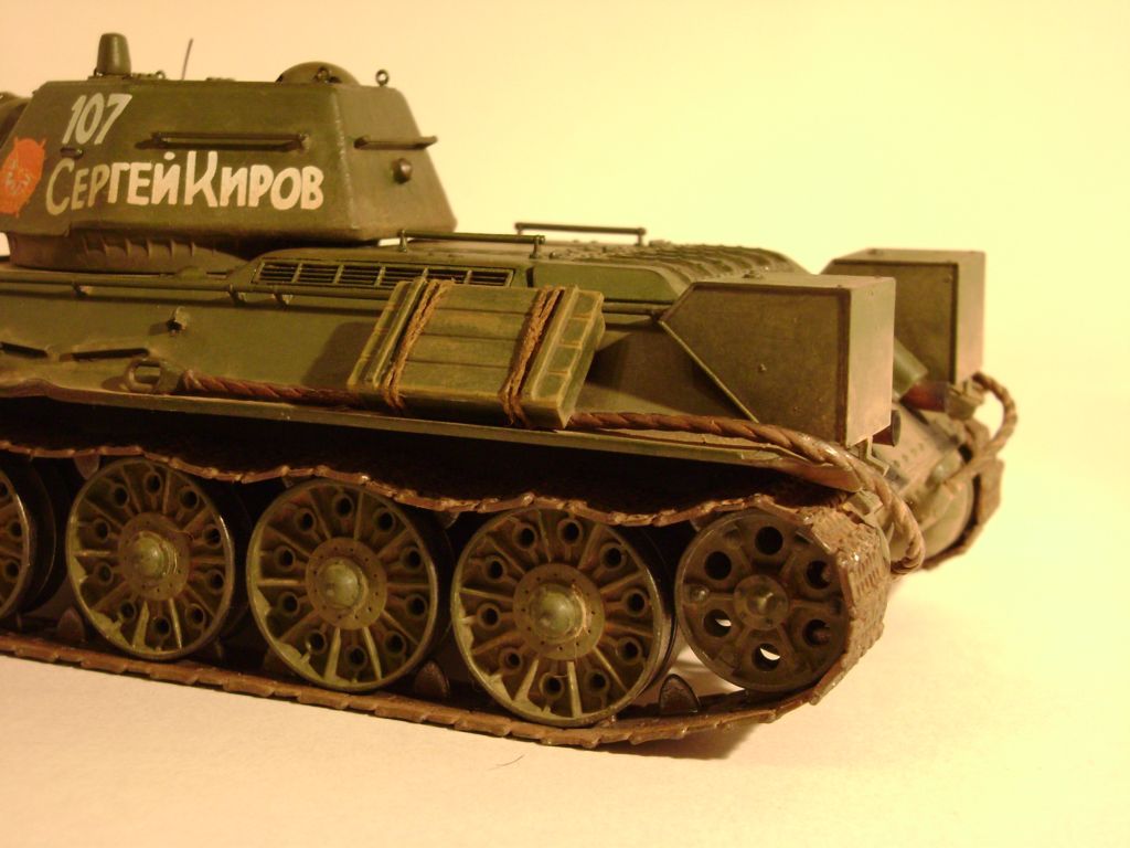 Как художественное произведение - отлично! Косяки конструктивные уже перечислены. Реснички лучше закрыть, технически это не сложно. Заменить тросы тоже не проблема. Топливные баки на корме от "Звезды" изначально косячные - должны быть шире примерно на 1,5 мм, но это вряд ли критично; опора конечно же на кормовой лист и крепится она первым от заднего крыла болтом. На моей модели такой же косяк, ещё не переделал. Надо добавить скобу на кормовой люк. Если машина уральская, надо добавить на корму ещё одну (третью) петлю крепления листа. Крепление лопат - тоже большой вопрос, думается, что крепились они под укладкой брезента. На фото креплений их с левого борта ниразу не видел ( исключая послевоенные фото ). Общее впечатление на "5".