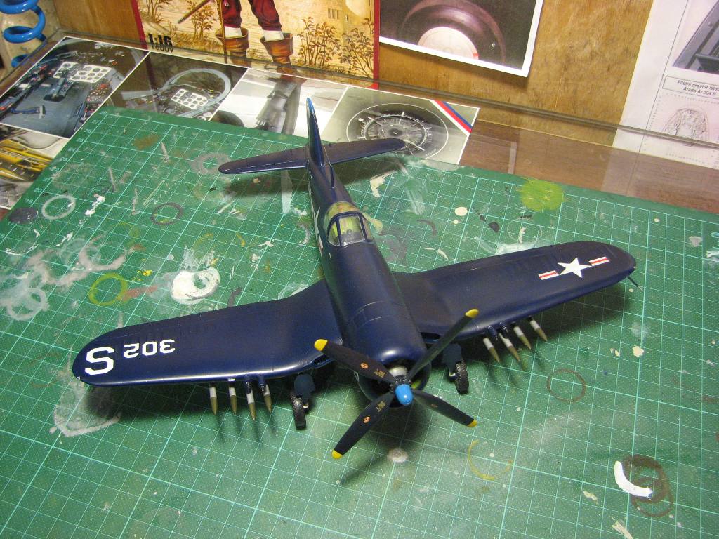 1)вроде бы балка гака на "корсарах" была как жезл гайца - чёрно-белая. 2)на гильзосбрасывателях можно было и следы гари нанести - всё-таки гильзы. 3)вроде бы не тот цвет ниш шасси. А так, модель сделана просто отлично, особенно понравился хорошо сделанный винт.