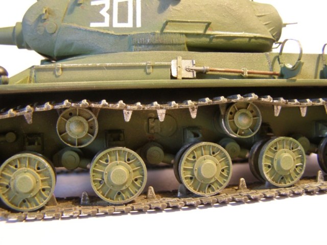 Из доработок:на свое место перенесена смотровая щель механика-водителя и антенный ввод, самодельные сеточки МТО, крышки на перископы. Также использовал точеный ствол от ModelPoint, ДШК от ТАНКа, траки от ВЭ.
