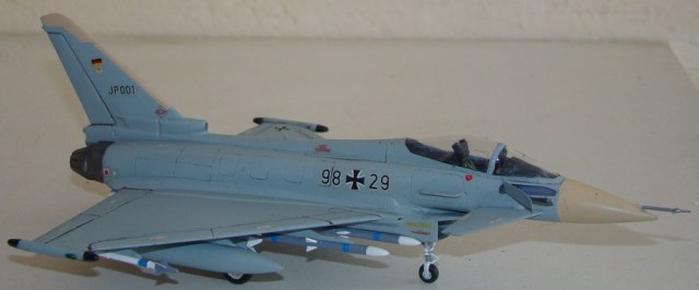 На модели ничего не перешивал, совсем. Сейчас Ревелл выпускает Еврофайтер в несколько другой комплектации и под другим названием - Eurofighter Typhoon (у меня Eurofighter 2000), в двух вариантах: одноместном и двухместном. Уровень сложности у нынешних моделей выше: 4 против моего 3.