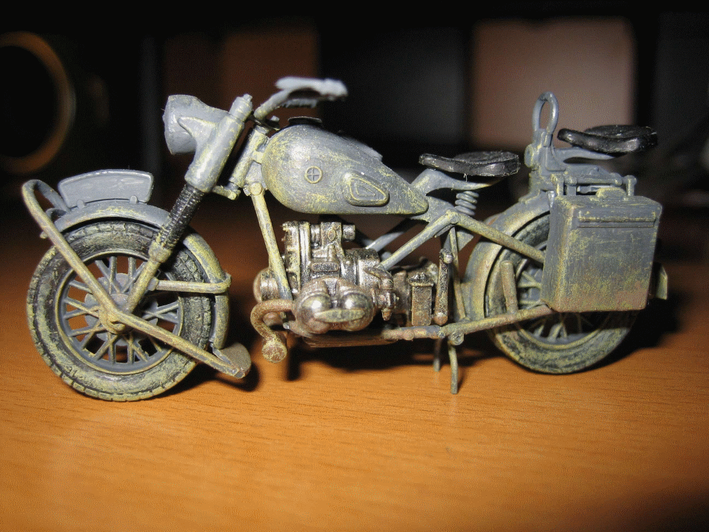 Надо было бы подетально красить.... а то сложно в куче трубок что то выкрашивать. По мне мотоцикл сложнее любой машинки. И критерии оценки должны быть другими. Ругать не хочу..... А похвалю за то, что не побоялся сразу за байк взяться.