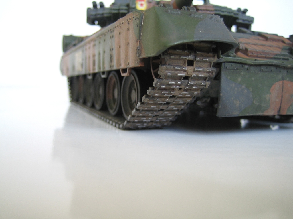 У каждого свое чувство прекрасного. Лично мое мнение (которое я никому не навязываю), что грязь без соответствующего оформления в виде виньетки или диорамы не очень уместна, а чрезмерная беспричинная загрязненность наводит на мысли о попытке собрать модель за три дня и скрыть дефекты сборки. Посему, грязи на танке ровно столько, сколько я посчитал нужным. И с большим процентом уверенности могу сказать, что экземпляр на приведенном фото в течение суток был отмыт до блеска.