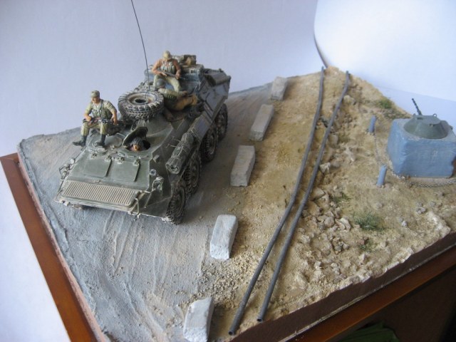Мне понравился сам замысел и идея. Жаль нет хороших, крупных фото самого БТР'а. Видны доработки машины, но они так сказать поверхностные. В целом хорошие эмоции остались от диорамы.