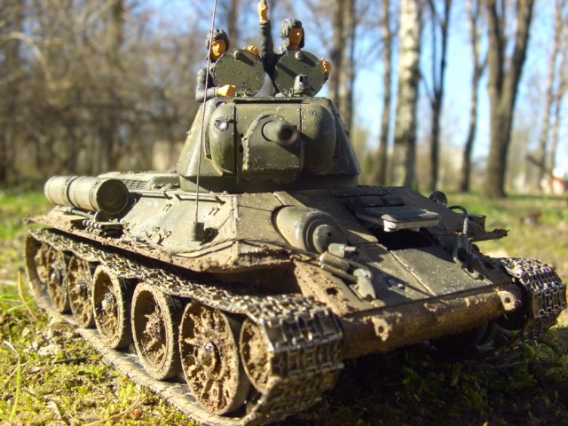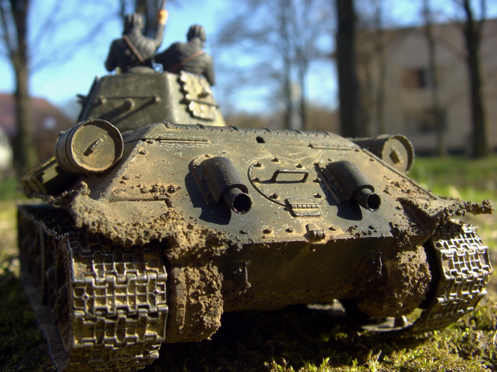 Моделька зело хороша. Матчасть оставлю в покое, однако меня поразили желтолицые камрады на башне. То ли освещение сыграло злую шутку. то ли подбор цветовой гаммы. Общее впечатление от танка - как живой