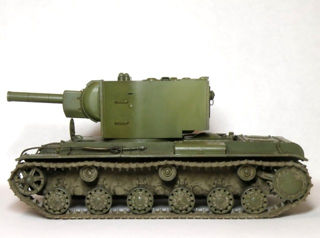 Модель конечно цепляет, но мне кажется, что на КВ-2, такие обширные плоскости, что можно были поиграться с выгоранием краски ну или хотя-бы подтёки сделать, а то снизу грязь, а сверху как с завода. Но за старание и аккуратность всё-равно пять!