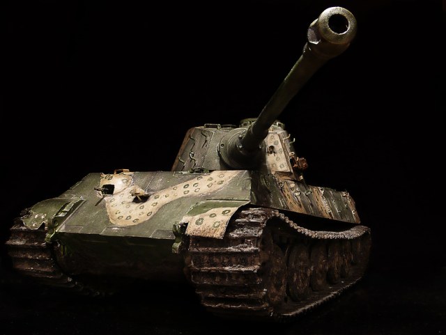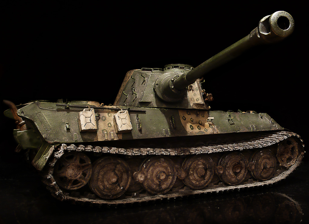 Егорыч привет! Узнаю эту машину, она из 3-ей роты 510-ого тяжелого танкового батальона ,Берлин апрель 1945 г. Да последнии деньки остались до нашей Победы! Только у этой роты был такой необычный камуфляж! Что-то немчуру под конец войны потянуло на танковую роспись. Еще бы им немнего времени дали и из цехов выходили бы танки с хохломой на бортах Мне кажется что надо еще замазать грязью низ бортов,а то они уж больно чистые посравнению с ходовой 5-