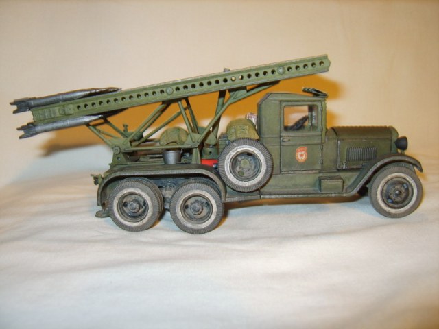 Окраска "кати" удачная, только снаряды не очень. На ящиках за кабиной остался шов. Матчасть не учтена, а тут раздолье: неправильная форма капота и жебер на боковинах, неплохо было бы доработать крылья. Можно было переделать мелочи, например ручки дверей, выштамповки на подножках. Ну и колеса...родной протектор никуда не годиться, можно было поставить смолу. Со всеми доработками модель смотрелась бы на порядок лучше.
