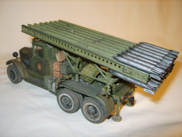 Уважаемые коллеги, представляю Вашему вниманию модель знаменитой Катюши на базе ЗиС-6( Алан 1/35). Сборка модели была начата года так два с половиной назад, а вот довести оную до логического завершения удалось только в этом году, -- кризис вдохновения видать. Потихоньку заканчиваю работу над незавершенкой былых лет. Модель собиралась без особых проблем, стыкуемость деталей относительно нормальная, что вполне естественно для постсоветстких производителей. Конкретная историческая привязка модели отсутствует. За основу взяты фото БМ-13, предавленные ниже.
