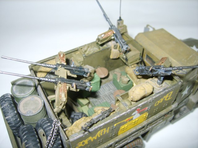 Однако основные изменения были направлены на усиление огневой мощи этих боевых машин. Помимо М60 их стали оснащать 12,7-мм пулеметами М2НВ. На некоторых «гантраках» эти пулеметы появились в варианте счетверенных зенитных установок М16 (снятых с полугусеничных транспортеров времен Второй Мировой войны – прим. «Отваги»). В 8-й группе построили 7 грузовиков с таким вооружением. На несколько машин поставили шестиствольные 7,62-мм установки «миниган» со скорострельностью 6 тыс. выстрелов в минуту и как нельзя лучше подходившими для «огневой зачистки» вьетнамской «зеленки».
