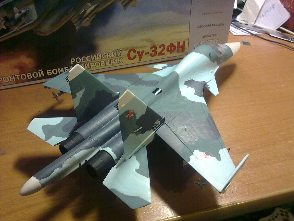 Ну блин началось! Кто очем, ток не о модели, не о ее недостатках и не о советах! Новичкам конкретно помагать надо! Ну с богом! Поехали! Самый главный косяк у нас, новичков, это хреново окрашеный переплет фонаря кабины (кабин)! Здесь он совсем неокрашен! Лучше используйте маски (более опытные коллеги надеюсь подскажут что к чему и как, т.к сам при покраске переплета маски не использую)! Да, сразу предупрежу, смарю по смарту, потому могу и ошибиться, недоглядеть, еси чо, поправте! Так, далее! Стыки крыльев и фюзеляжа надо либо шпаклевать (щели), либо изначально подгонять (я пока так делаю). Как уже сказали облой надо снимать и шкурить (да и все стыки половинок шкурить), границы камо не ахти, особенно на килях, толстый слой краски (я так понял это звезда-супер, для кисти лучше акрил,да и не звездовский, но еси нет альтернативы, то.....у мя нет, потому пользую звезду-акрил), да повторюсь, что местами недокрашена (ниша передней стойки и створки основных)! Я так поня вначале все собрали, а птом красили? (см в районе правого сопла). Можно и нужно парой красить, а птом клеить! Ну пока все, в ост еще сам не спец! Ставлю 4! Дерзайте!