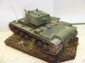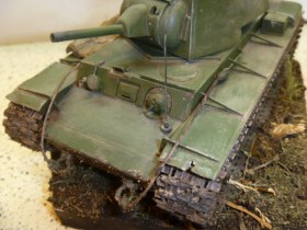Не важно сколько кв-1 на сайте, каждый собирает то, что ему нравится! По модели: грязь на фото №1 не естественно выглядит, также её расположение под надгусеничными полками вызывает сомнение (кусками, по другому не скажешь) фото№3, скатка тож не очень понравилась. То что сделана подставочка это(+). От меня 4)