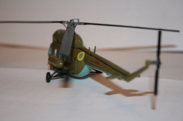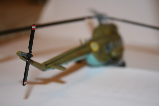 Слишком много лака, модель будто заламинированна, смывка по такой грубой расшивке слишком контрастна, стабилизаторы на балке приклеены задом наперед, шасси покрашенно совсем не "в дугу" плюс надо все-таки было попытатся сделать отсутвующие детали. Я когда делал свой почикался изрядно, видать производитель вообще не следит за комплектностью своих наборов. Для второй модели 4 с большим натягом.