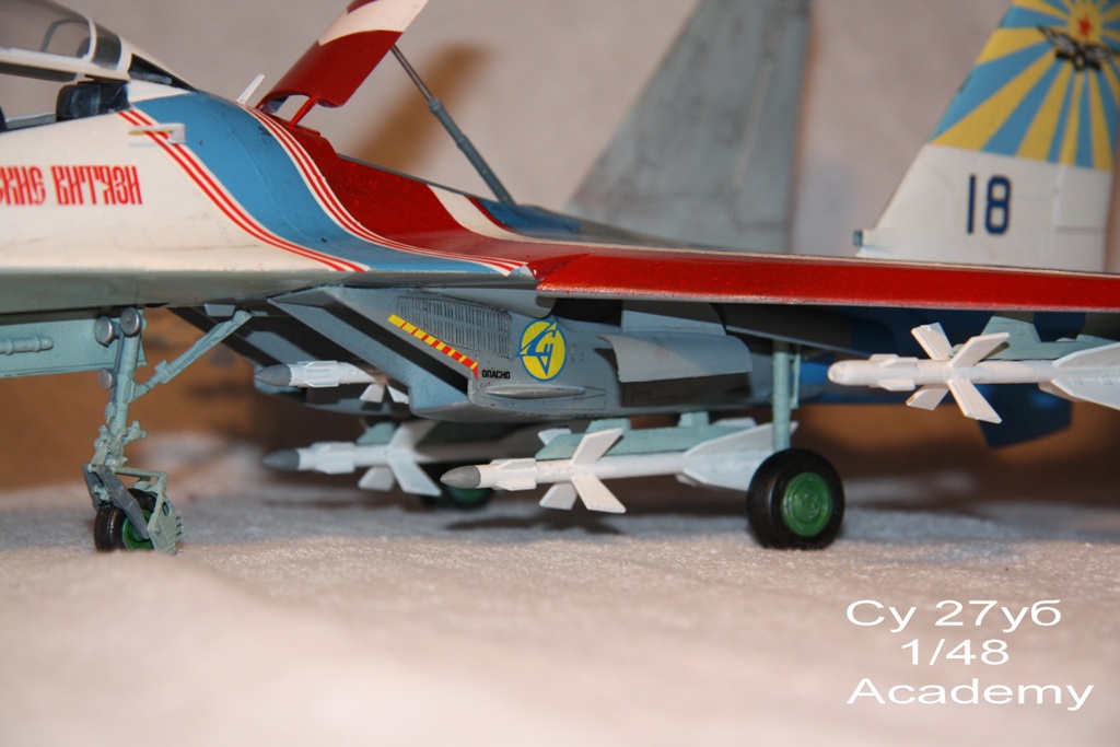 Special to ВзПУшника: я имел ввиду окрас внутренней поверхности крышек люков шасси, поэтому привёл в пример это фото. Specifl to АФФТАРа модели: чтож, видимо цепляли и к Витязям показушные ракеты(можно определить по окраске). Ну а бывало и такое -- см. фото. Это тоже Русские Витязи, только на других машинах... Особенно касается борта №04