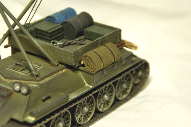 Как мне кажется РЭМки имели два пути появления, это машины собранные из неопределённого набора запчпстей, в полевых условиях. А также ,наверное уже серийные, послевоенные машины. Игорь скорее Вы правы, мой аппарат наверное смотрится по "заводскому". То, что собиралось в полевых условия не могло иметь, ни крана, ни кузова. Скорее всего, ремонтники ограничивались, снятием башни, заделкой отверстия деревом, да доукоплектованием технички более разнообразным слесарным и шансовым инструментом.