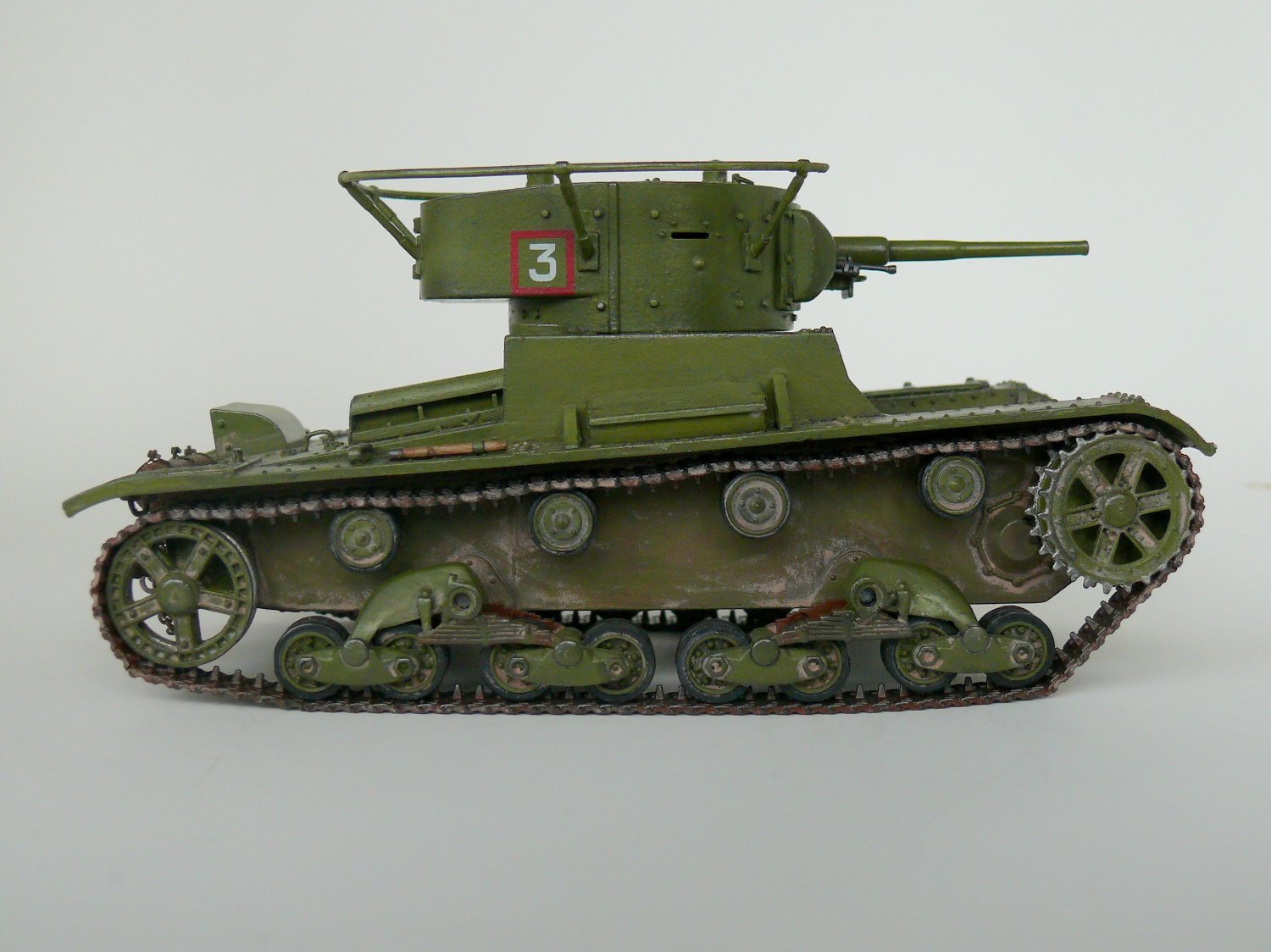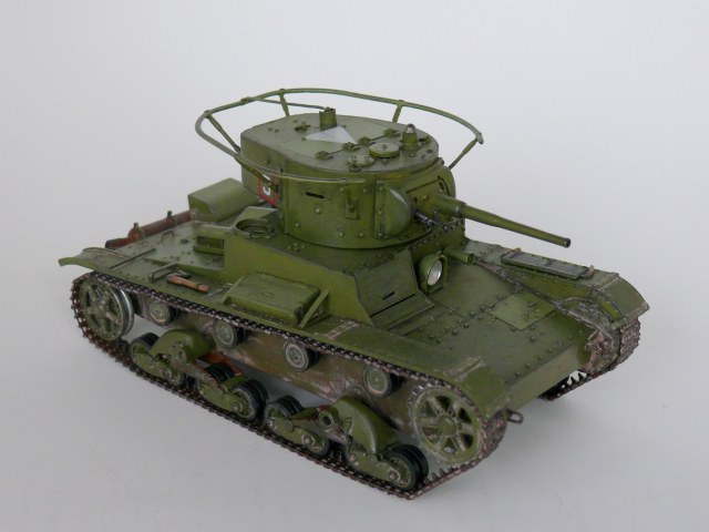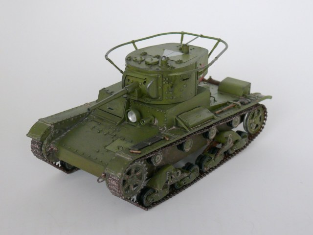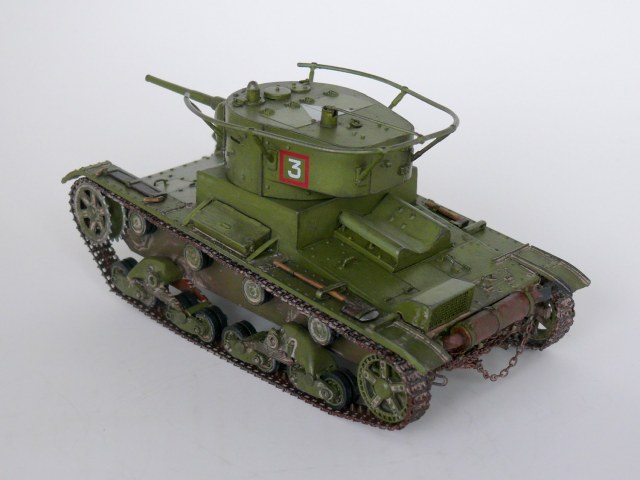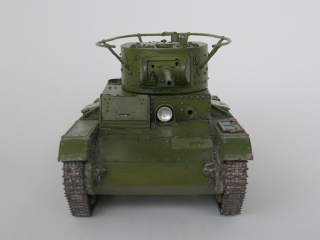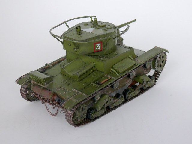 Еще один образец советской довоенной техники в моем исполнении.Спасибо Звезде за перевыпуск,очень хотелось иметь его в своей коллекции. На мой взгляд модель не так уж плоха,а гусеницы так просто великолепны. В общую геометрию не лез, попытался исправить лишь внешние косяки звезды: заменил заклепки на лобовой части и башне,добавил недостающие;Пулемет самодел из иглы; доработал глушитель; немного подправлена хордовая часть; маска орудия перепилена на штампованую ну и еще кое какие мелочи. Окраска кисть.Спасибо за внимание.