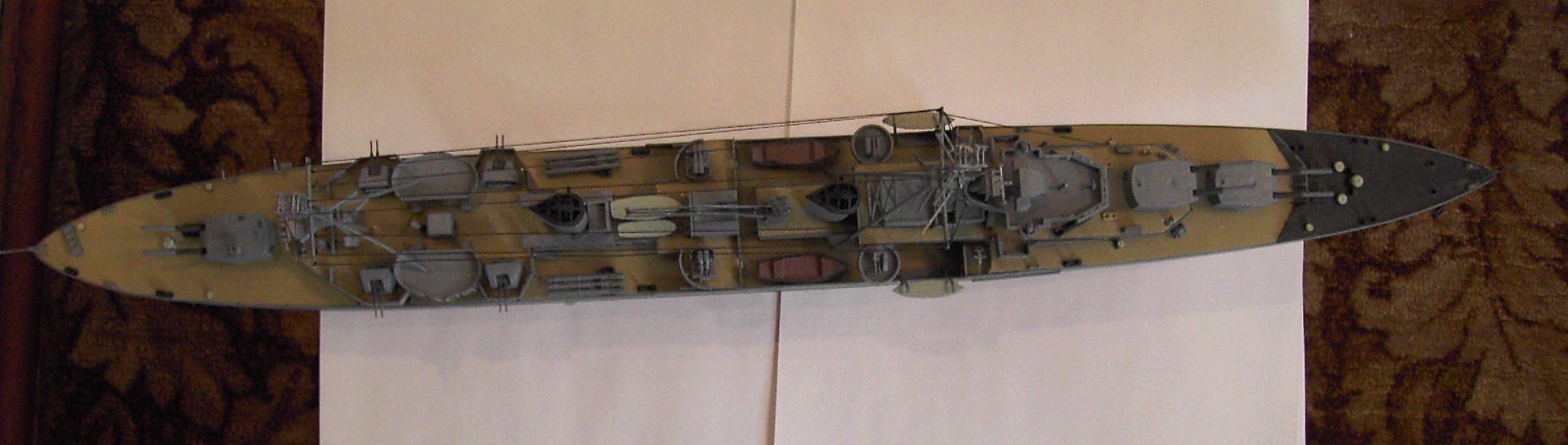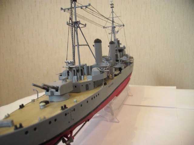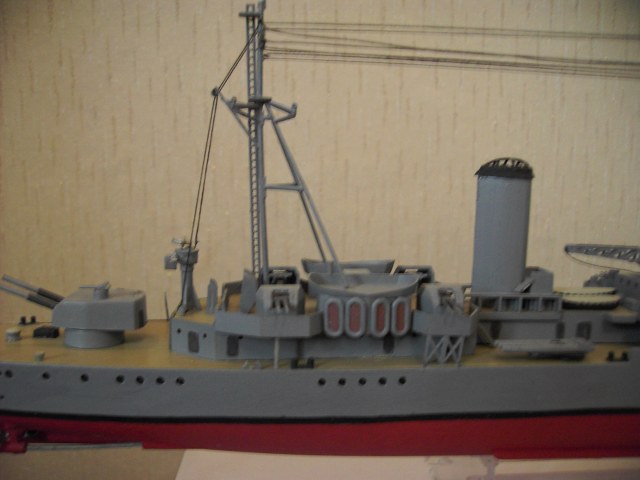 Конечно, кое-где видны щелки, ватерлиния немного неровна, но с кисточкой в таком масштабе сложно добиться хорошего результата. На большие железные корабли однозначно нужен аэрограф. Тем более, если хотите работать с травленкой. Травленка, крашеная кисточкой теряет свою ажурность и зрелищность.