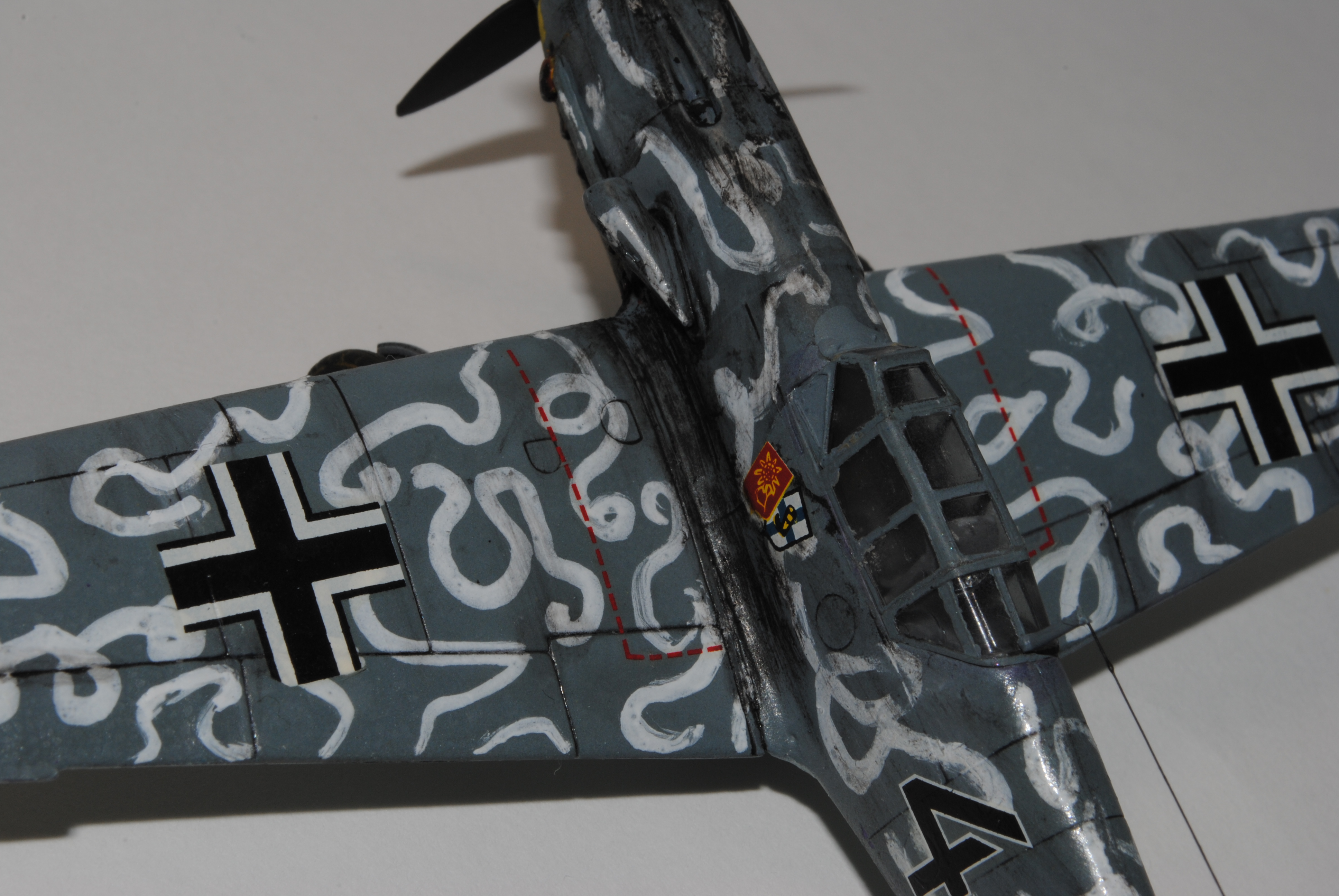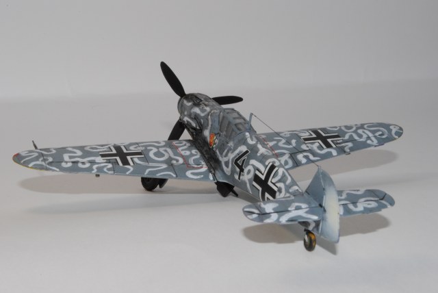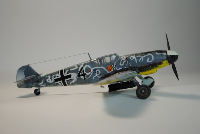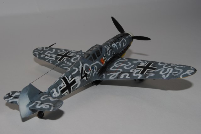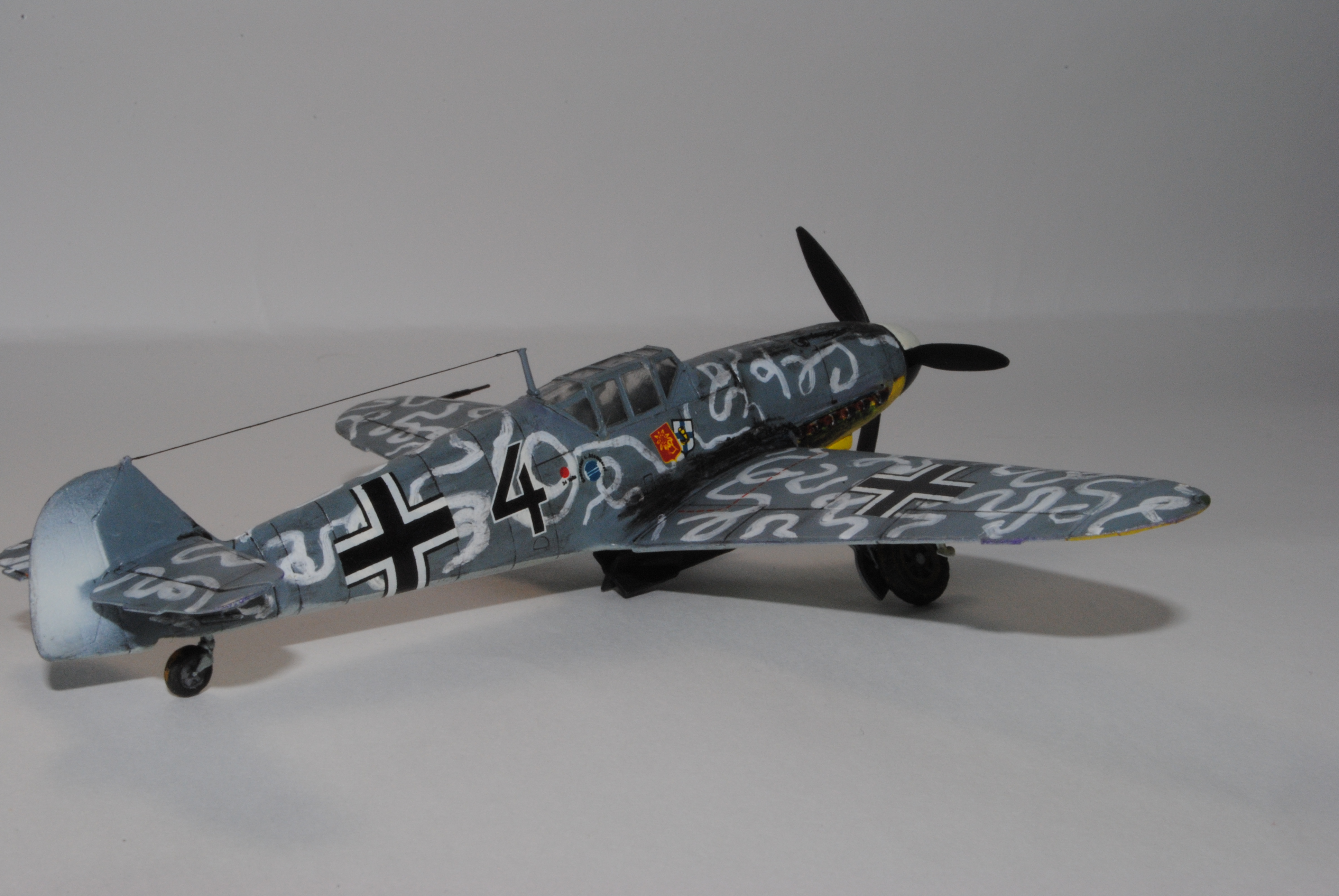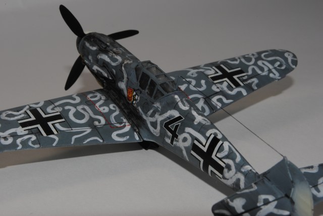 Хочу показать Вам для обсуждения очередную модель. Этот мессер воевал в Финляндии. Меня привлек его камуфляж, воспроизвести который "на ура" мне не удалось. На этой модели впервые применял смывку, впервые использовал аэрограф. Качество самого набора мне понравилось. Использовал эмаль Акан и акрил Звезда, смывка-масло на уайт спирит.