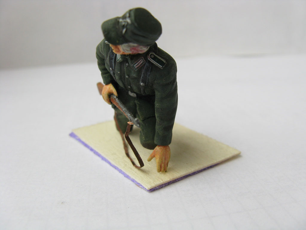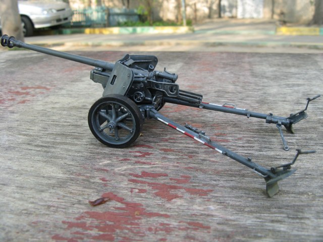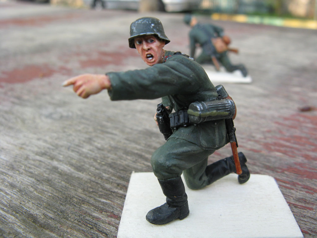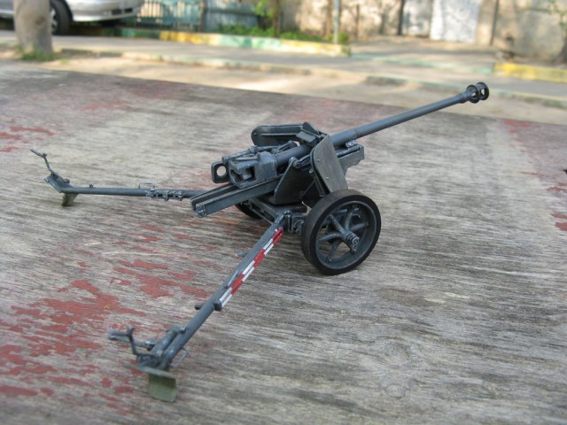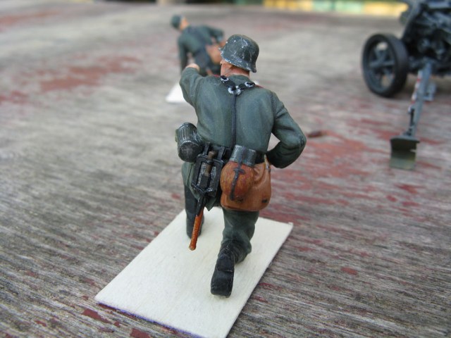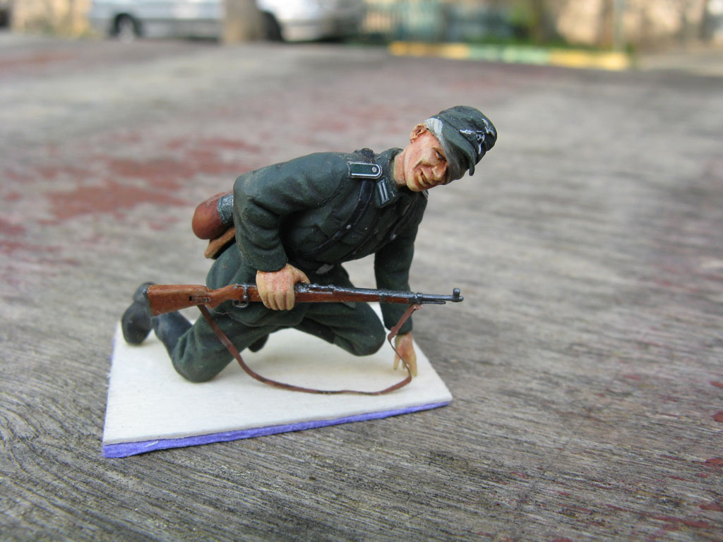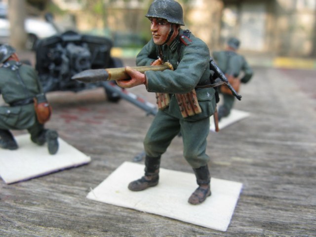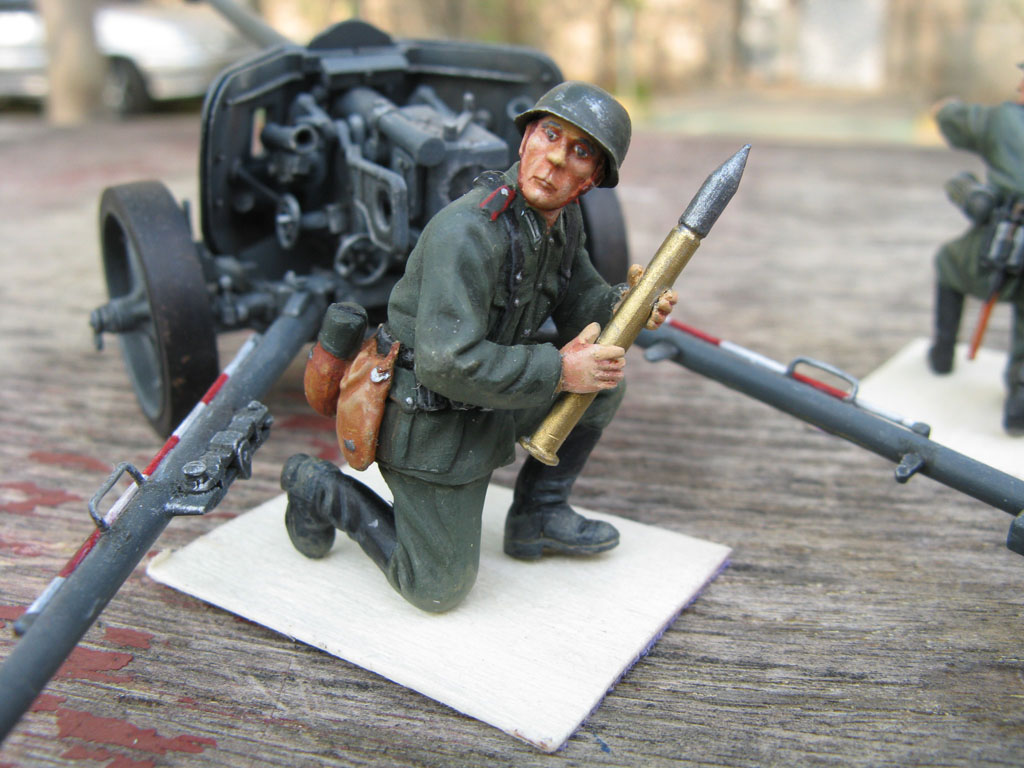 Старенкая пушка производства Звезды. Родной набор итальянских буратин отправлен ф топку и приобретен набор панцгренадеров. Этих гансов слегка подогнала к пушке. Кто то получился довольно органично а некоторые не очень. В закромах нашла пару смоляных голов. Так и образовалась некоторая сценка. Красила всем что попадалось под руку: эмали, акрил, масло, темпера. Модель автомобиля ВАЗ во время съемок не пострадала.(А жаль!!!!!)