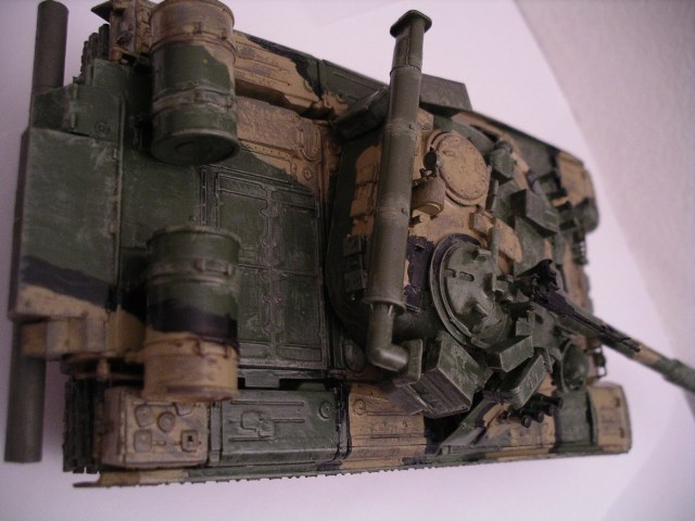- Поглядывайте при сборке на фотографии реальных машин,а не просто клеите "как в инструкции". К примеру у вас дымовые гранатомёты вверх смотрят,а это неправильно. Гляньте как в реале.