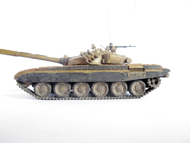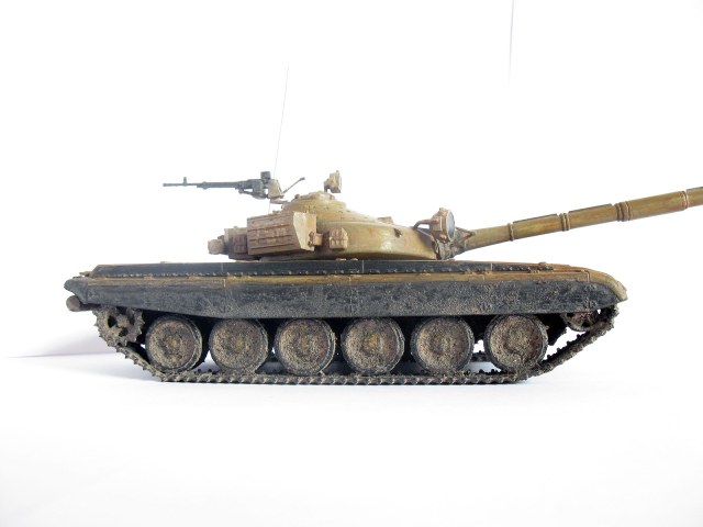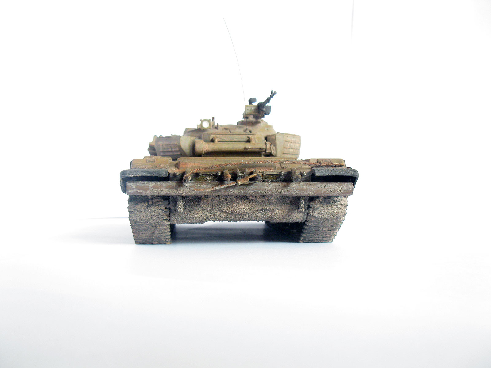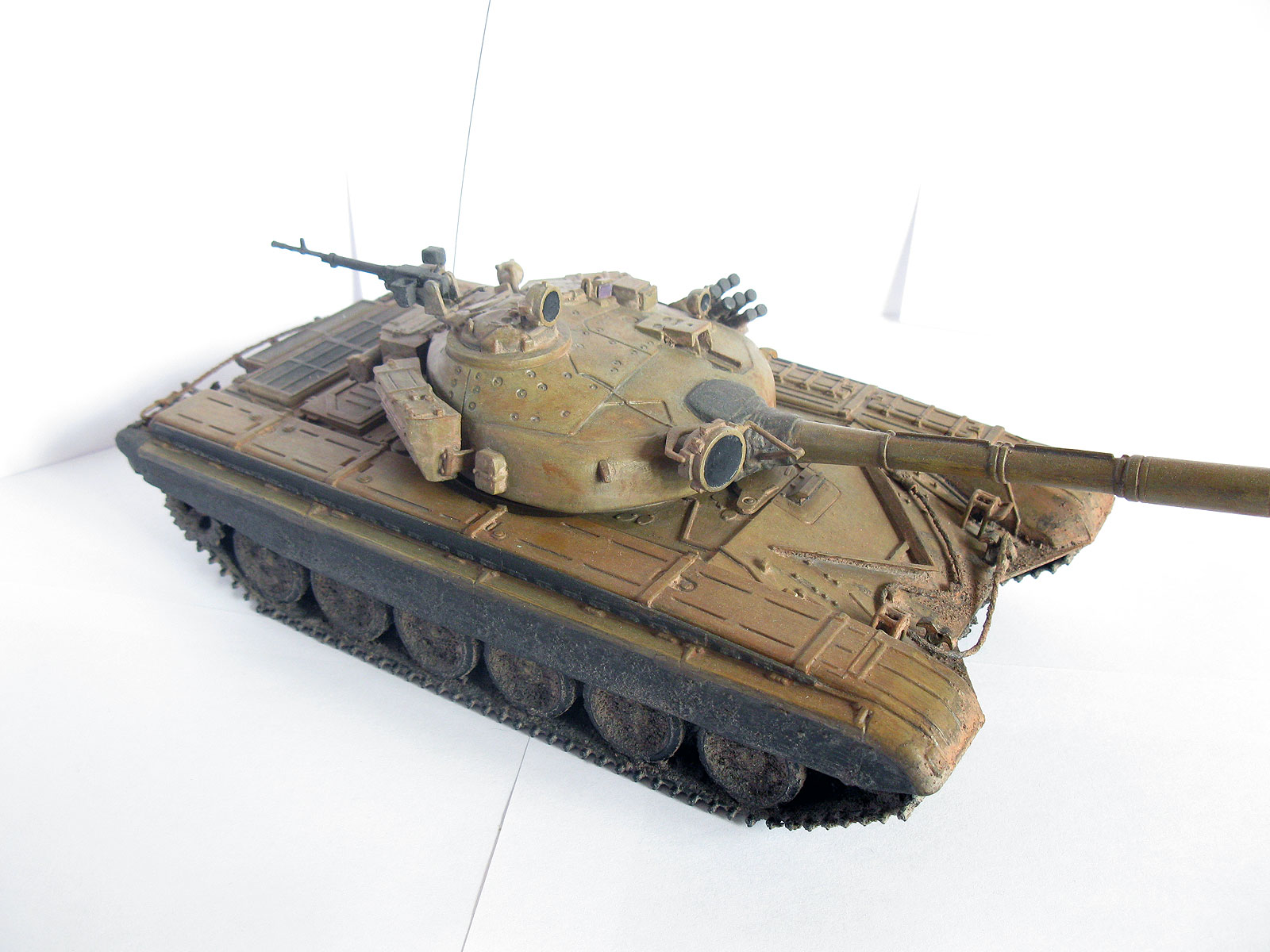 имхо грязь не очень удалась. Во-первых, очень равномерно, как по линейке. Во-вторых, комья земли слишком крупные - получается, что на танк налипли камни. Да и пустынный танк на пустынной подставке странно сочетается с грязью, как сказано выше.