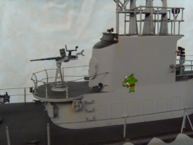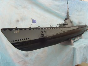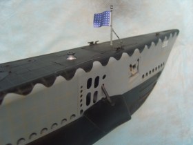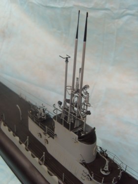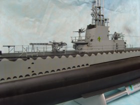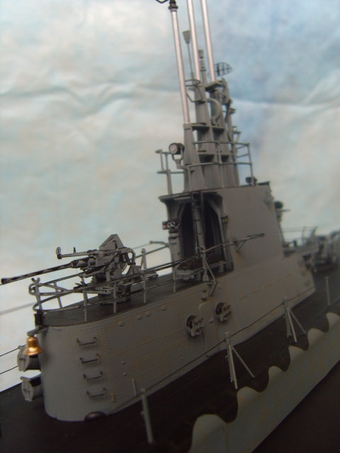Случилось это в начале осени 2008 года. Поступил заказ, наклепать субмарин, много и разных. Планировалось разместить модели в каком-то ночном клубе, который должен был открыться до новогодних праздников. Затарили меня коробками различных моделей лодок, накупили краски. Параллельно, заказали в магазине модель ПЛ Gato в 72ом масштабе с большим пакетом травления (BIG5301). Пока шел заказ, успел изготовить модели что были в наличии. И тут прогремел кризис! Немного позднее пришла лодка с травлением. Задача по сборке модели заключалась в быстром и качественном подходе, привязка к оригиналу не оговаривалась. Тем не менее попробовал привязаться к какой-нибудь подлодке. Изучив оперативно фотоматериал который был под руками, понял, что это утопия (кто собирал, тот знает). В общем, пока шла сборка, а делать решил ее со всем травлением, что есть в наборе,необходимость в лодках отпала, и начала Gatина пылиться на полке, а занимает эта посудина места ой как много. Через год с небольшим решил вернуться к этой работе, в связи с участием в выставке. Переделывать ПЛ под какую-то конкретную субмарину смысла не было, тем более, что травленая палуба уже была установлена. В общем, собрал субмарину, поучаствовал в выставке и оставил у себя, так как выкупить сее чудо у клиента нет возможности. Вот такая история приключилась с самой дорогой, пока, моей моделью.