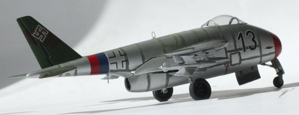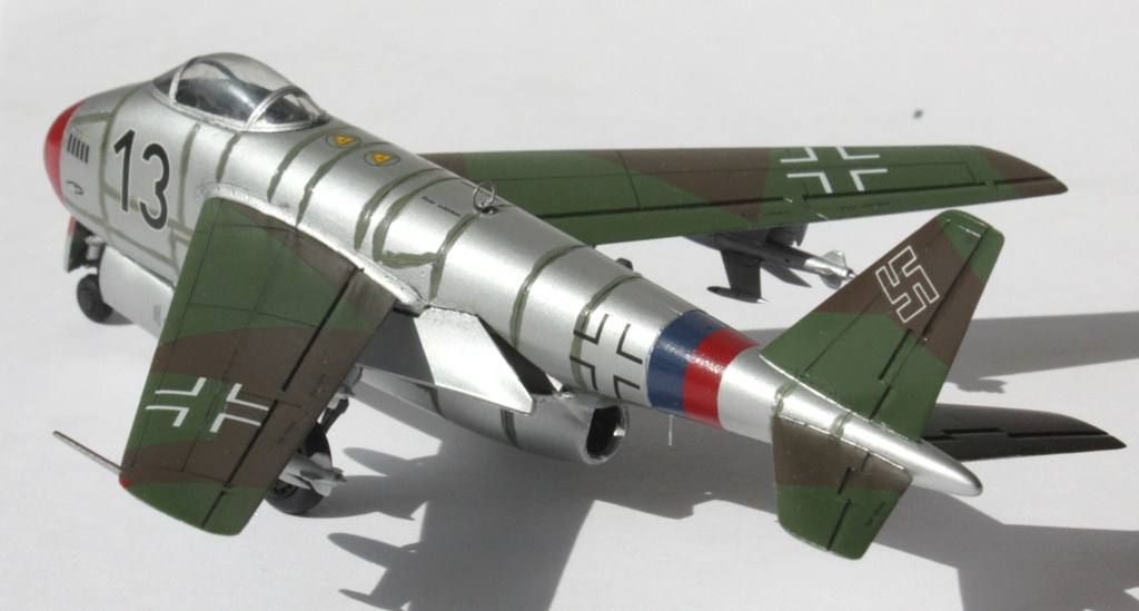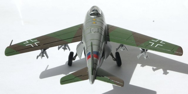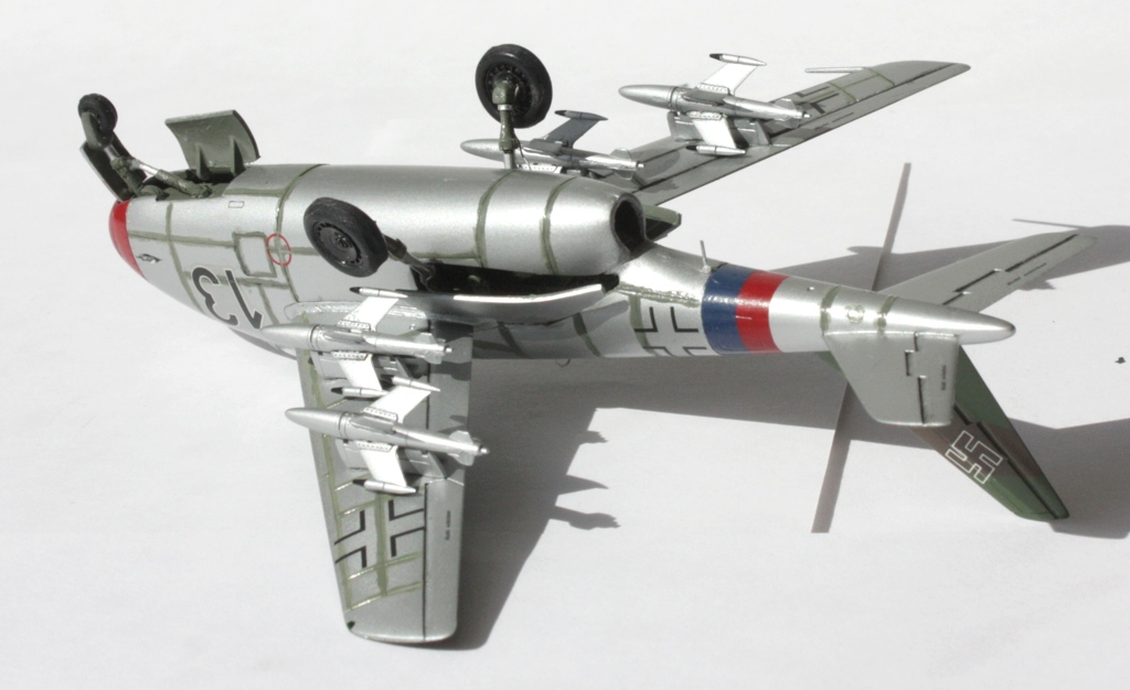 Ракеты - встречал несколько вариантов окраски. Сначала хотел носовую часть покрасить в чёрный цвет, а крылья в цвет дерева, как они были у опытных образцов. Но т.к. Luft'46 позволяет маленькие вольности, решил делать их полностью серебристыми. Как было потом, лет через 15 после войны Хотя теперь думаю, надо было сделать, как изначально планировал - зрелищности бы прибавило. На Вашем 1101 они смотрятся здоровски. А шов зря зашпаклевали по центру фюзеляжа - он там был.