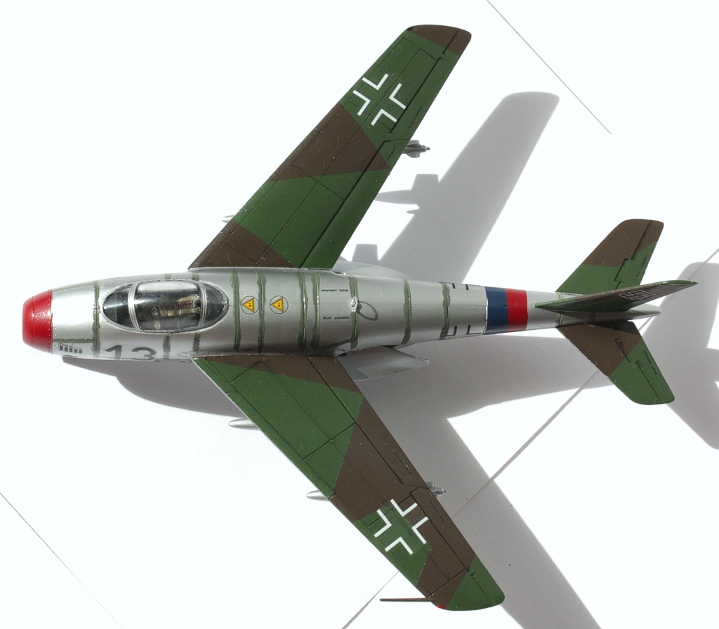 Почему серебристый... Честно - после просмотра множества источников сложилось такое мнение.. Если говорить уже про постройку модели - например, в Osprey Modelling №12. Me-262 на страницах 72-78 описывается машина с подобным камуфляжем. И загрунтованы тоже только швы. (И с Не-162 такая же картина). Только вот они у меня очень яркие получились, здесь я лопухнулся.