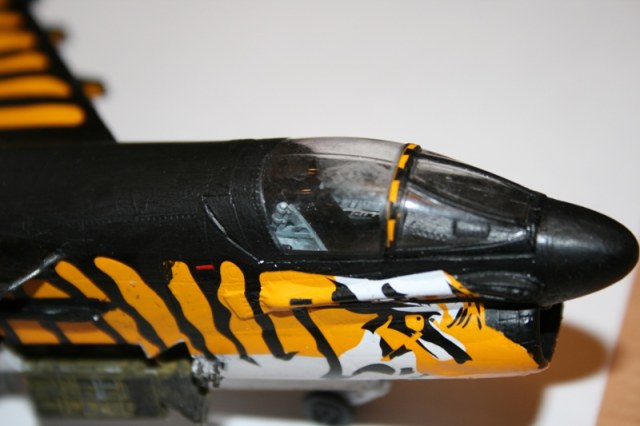 издалека модель действительно смотрится эффектно, но фото вблизи портят всю картину. про многое уже написали повторять не буду, стык желтого и черного цвета на воздухозаборнике неровный, если смотрели фото, то почему цвет внутренностей кожуха сопла неправильный, и надо было добавить две антеннки на носу.