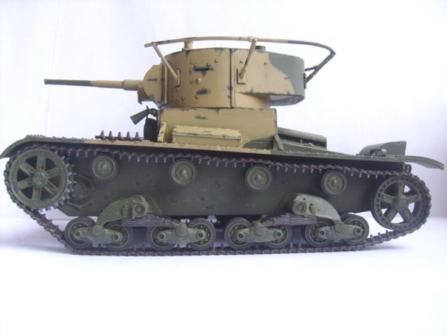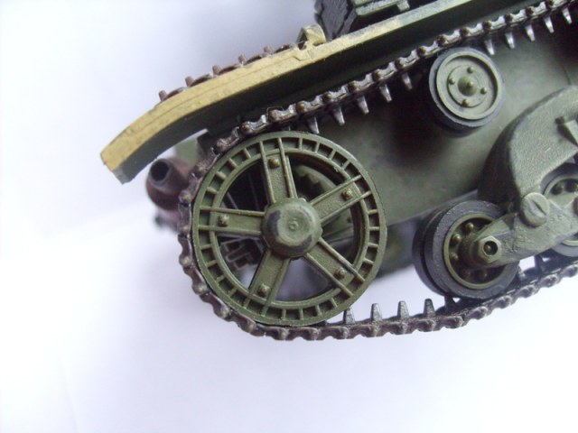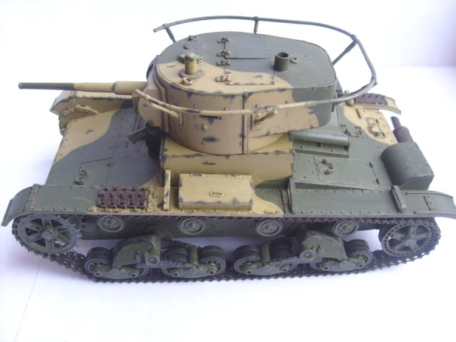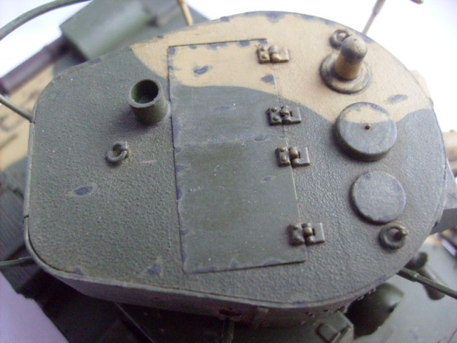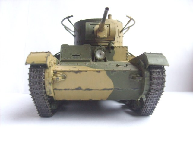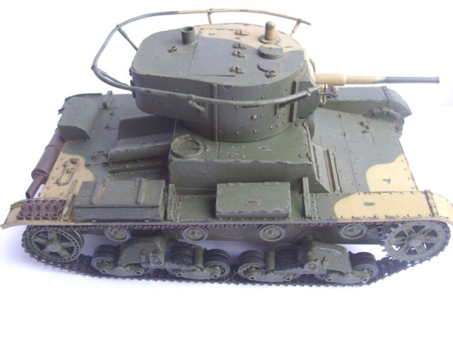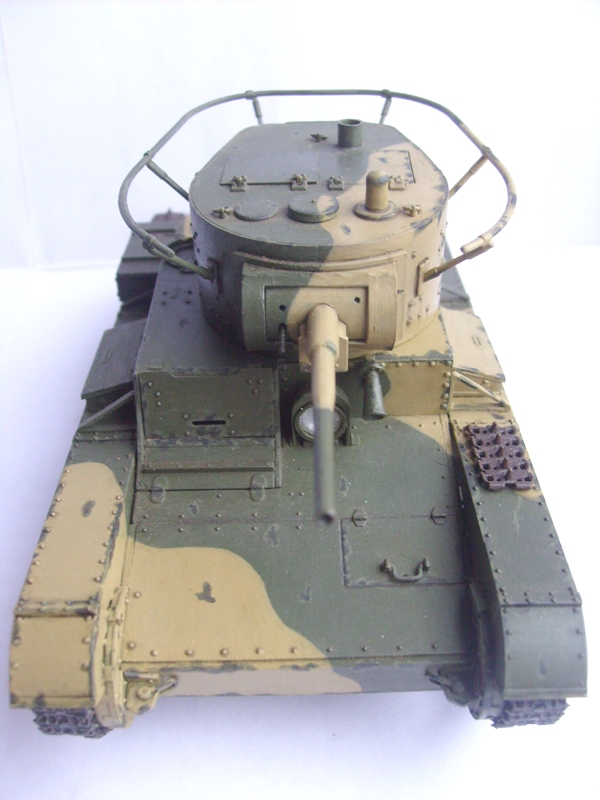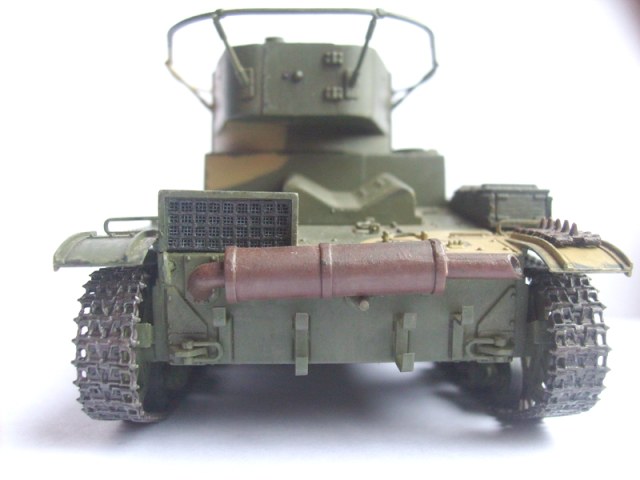 Юрий обратите внимание, что на петлях люков должны быть заклепки. Скобы, что на корме танка, все же потоньше должны быть. Вообще много можно писать и писать- имхо на любителя. Я собирал Т-26 и также много несоответсвий матчасти )))