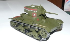 Модель одного из массовых (да и основных наравне с БТ) советских танков предвоенного периода . Набор порадовал качеством отливок и неплохой стыкуемостью деталей. Шпаклевки минимум. Окрас и декали - Киевский военный округ (середина 30-х годов).