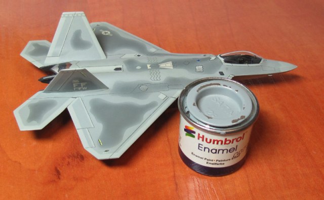Буквенно-цифровые обозначения и опознавательные знаки на F-22 светло-серые. Декали же, данные в наборе имеют скоре, кремово-бежевый цвет. Но на готовой моделе в глаза это бросается не сильно.