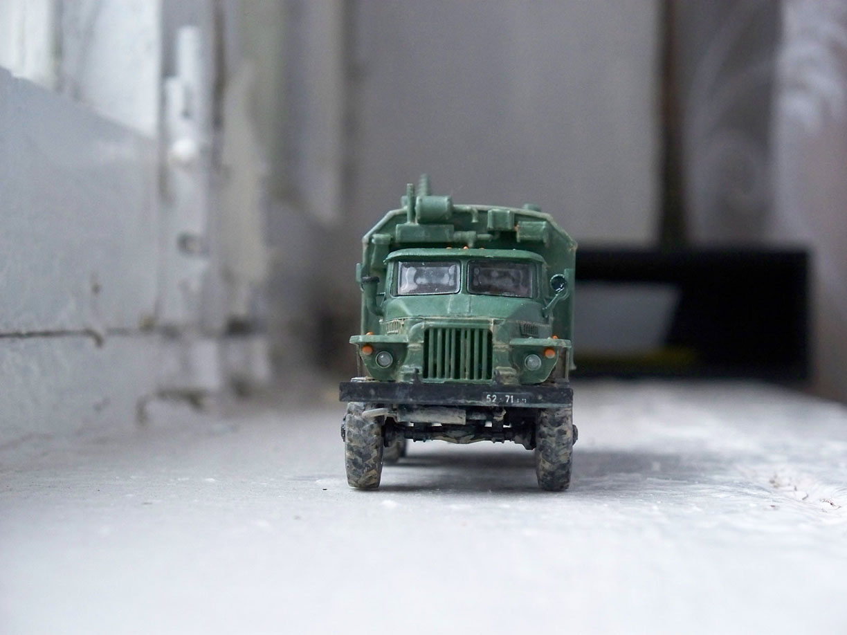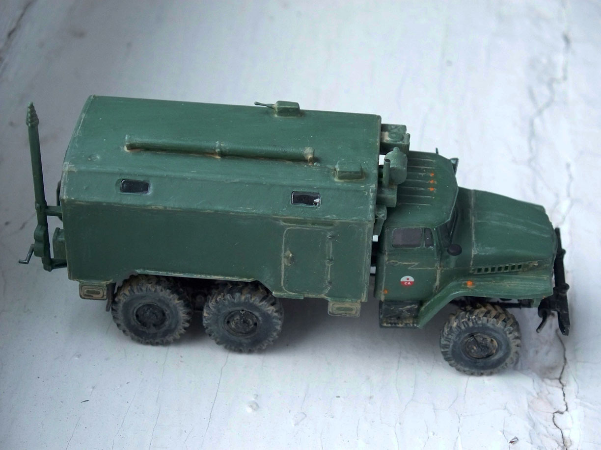 "Урал", по совместительству - передвижной командный пункт, от фирмы "ICM". В целом качество набора хорошее, пластик хорошо реагирует на "Звездовский" клей, швы получаются чуть ли не прочнее, чем сам пластик. Немного обидели парочка растрескавшихся на составляющие деталей, но это лечится.