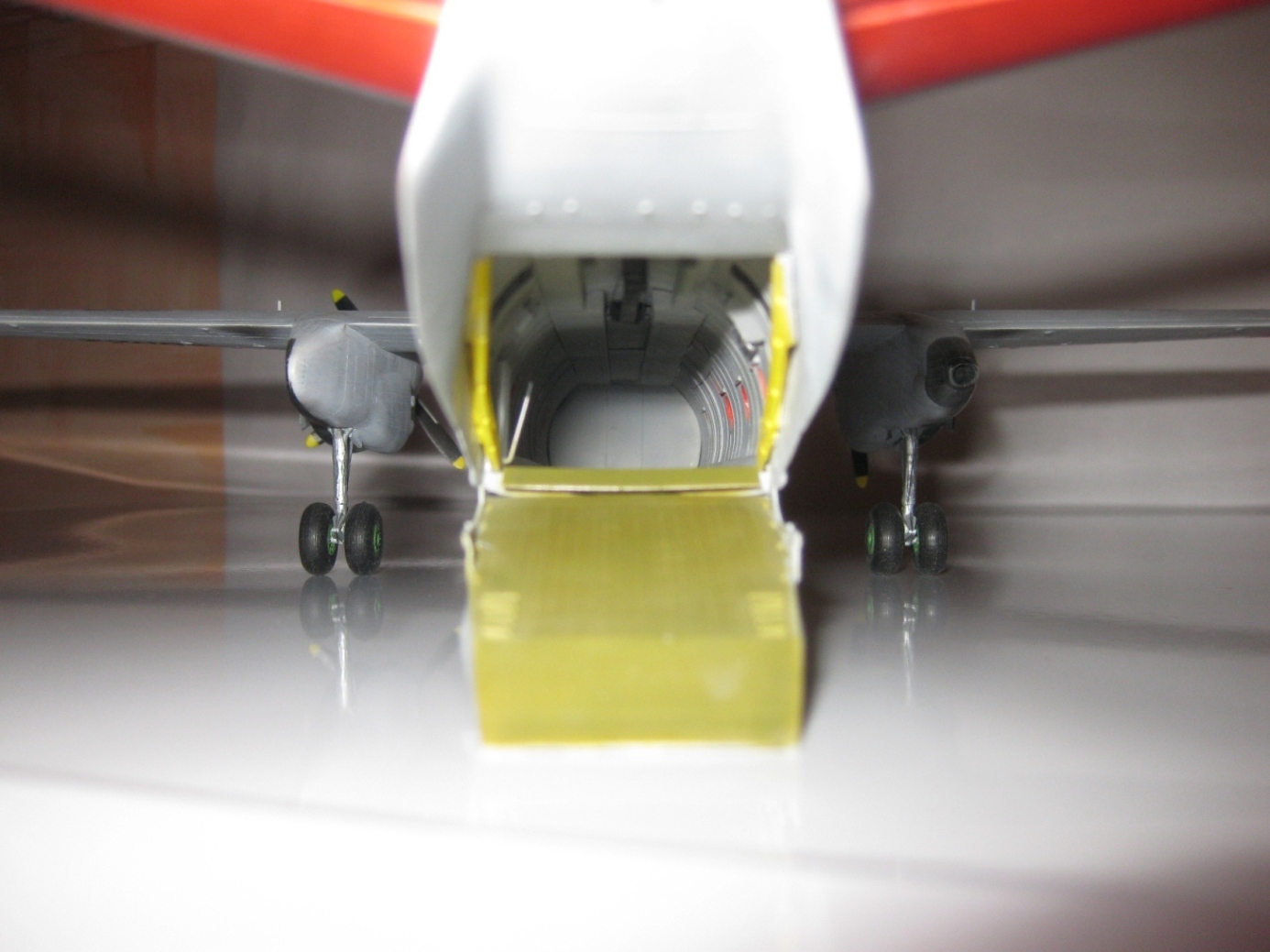 Модель сделана без использования декалей вообще, рампа выполнена открывающейся, шасси от "Экипаж", заменены иллюминаторы, проработана кабины экипажа и много всякой мелочевки. Модель без технички и со слеами эксплуатации. жду критики и оценок!