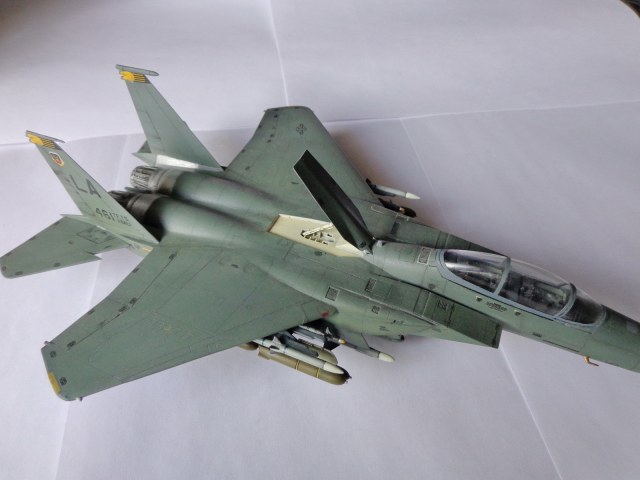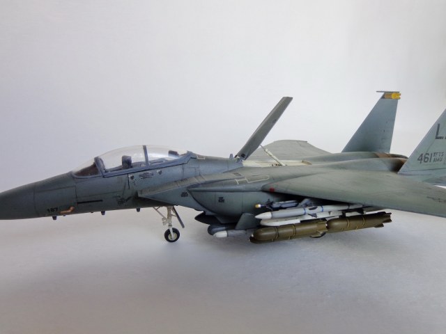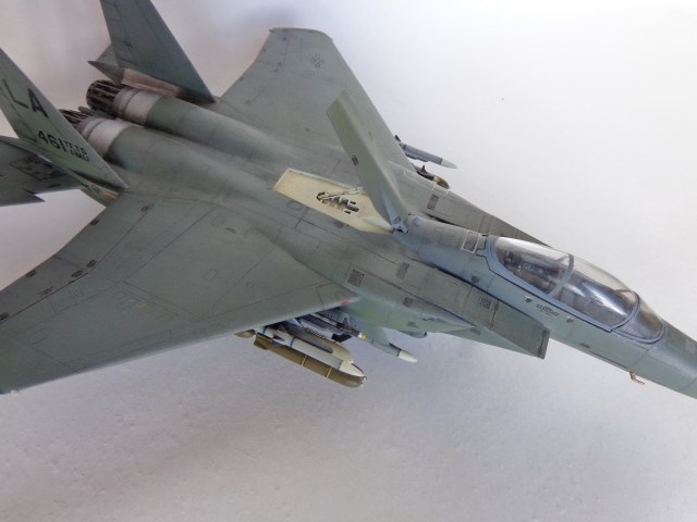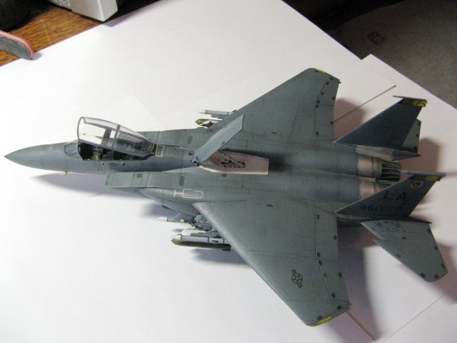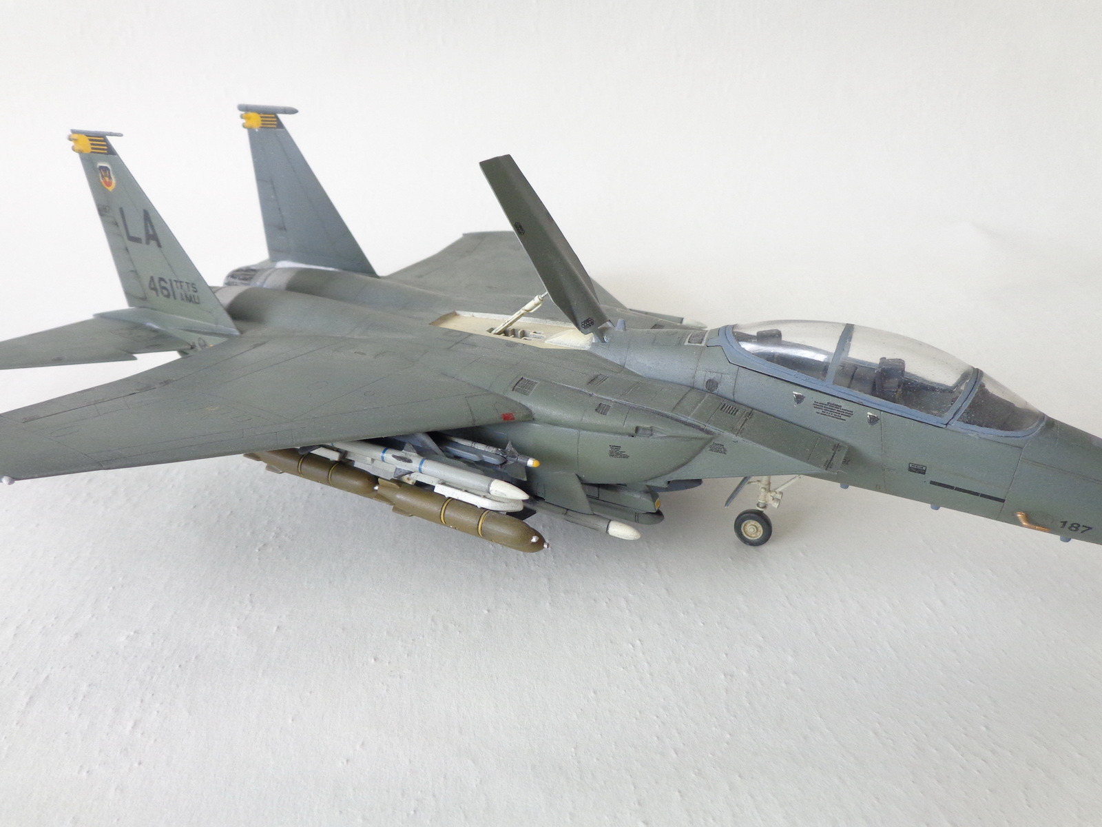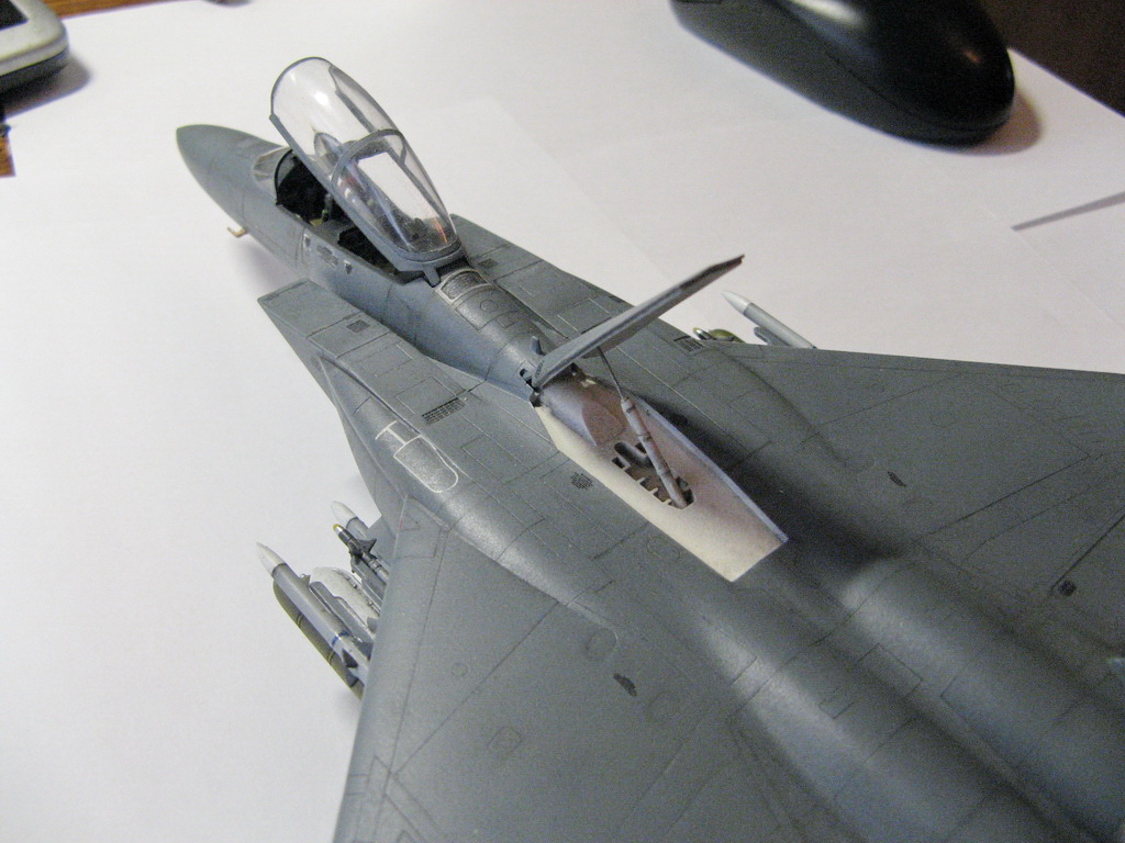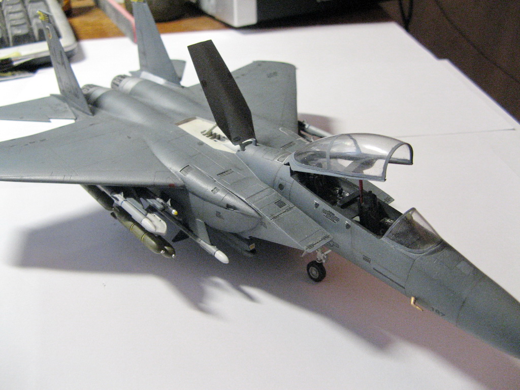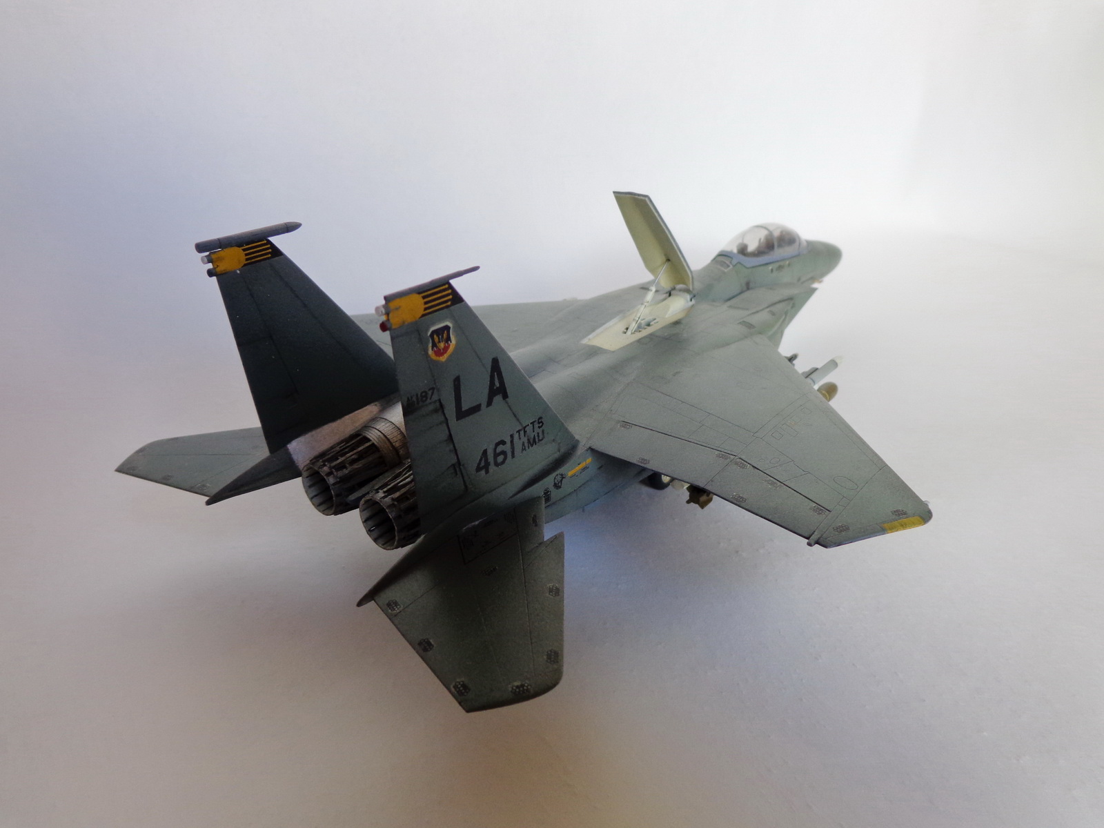 Ни к сборке, ни к покраске претензий нет. Все на высоте. Вобщем мне понравился Ваш ударный Игл, но есть пару косячков. Первый - от производителя - присутствие "ласта" между двигателями. В реальности на модификации "Е" его нет (см. ниже). Второй связан, видимо, со следованием инструкции при покраске вооружения, а именно бомбовые кассеты Мк.20 Rockeye в действительности окрашиваются в белый, а не оливковый цвет.