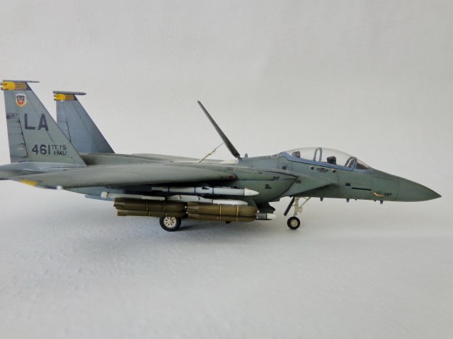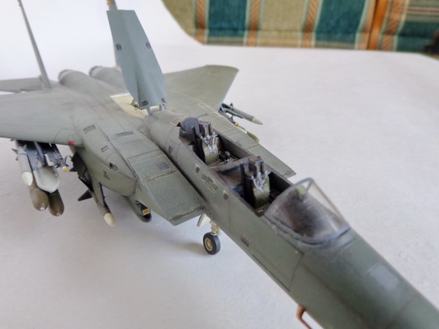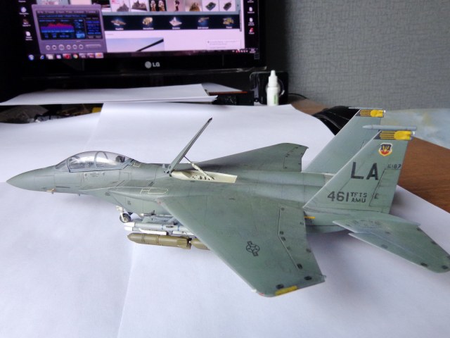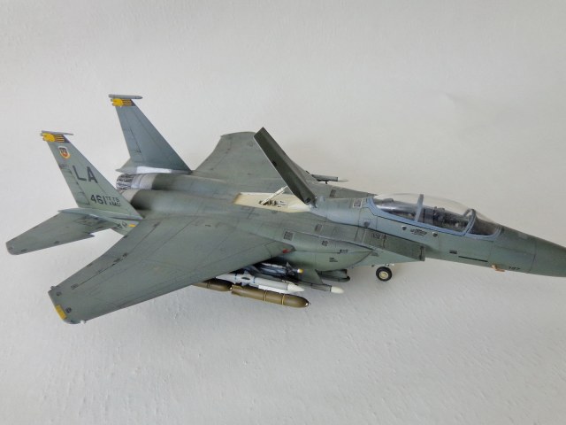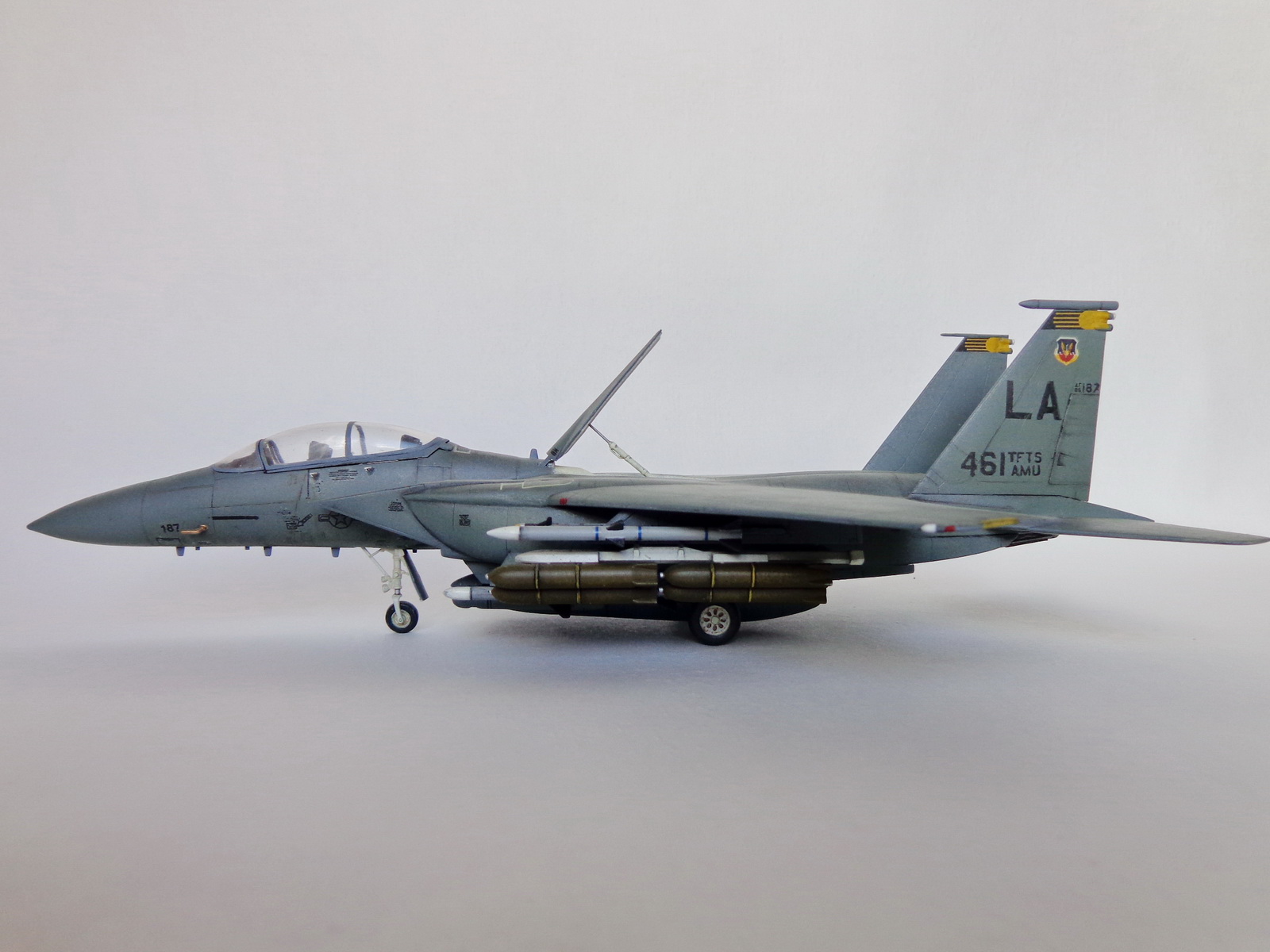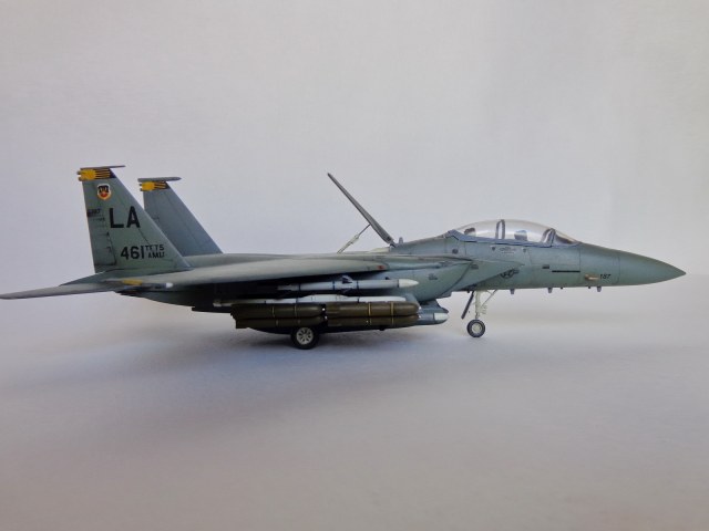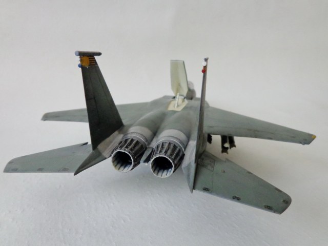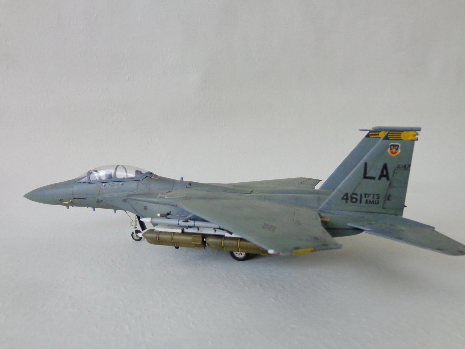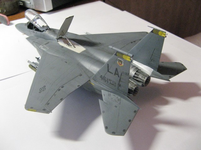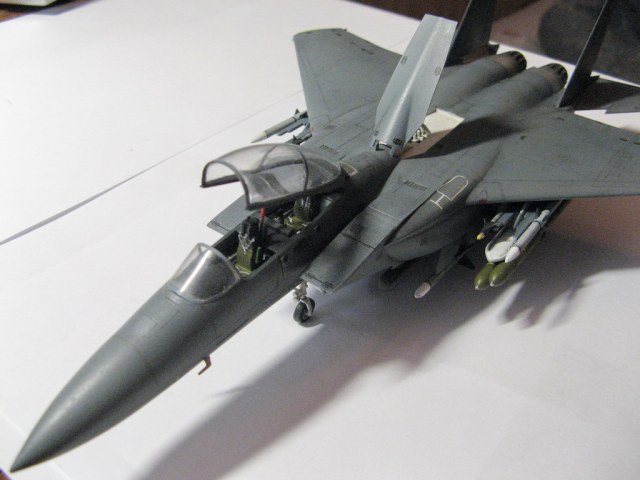 Ни к сборке, ни к покраске претензий нет. Все на высоте. Вобщем мне понравился Ваш ударный Игл, но есть пару косячков. Первый - от производителя - присутствие "ласта" между двигателями. В реальности на модификации "Е" его нет (см. ниже). Второй связан, видимо, со следованием инструкции при покраске вооружения, а именно бомбовые кассеты Мк.20 Rockeye в действительности окрашиваются в белый, а не оливковый цвет.