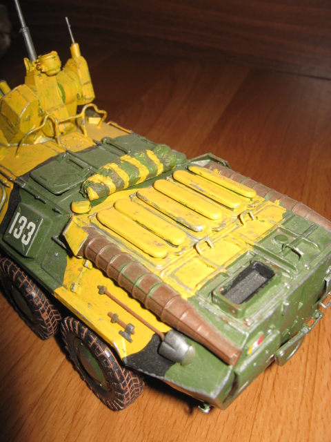 Поручни можно было бы на проволочные заменить, а то они квадратные какие-то и возле люков не хватает поручней, да и защита глушителей вроде как в цвет камо выкрашивалась.