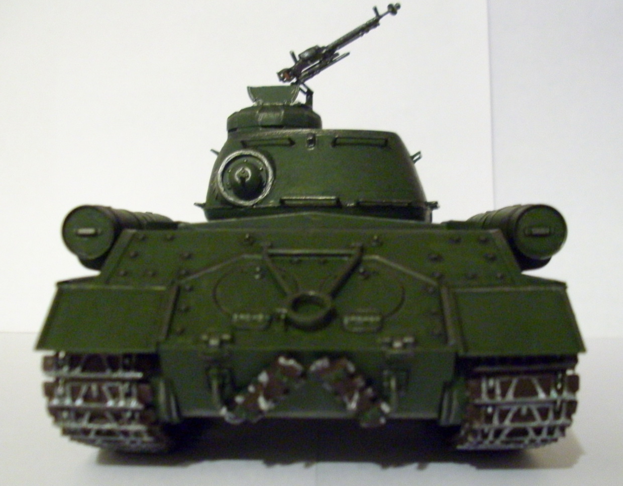 К вышенаписанному добавлю, что - во-первых, провис по левому борту уж очень большой, во-вторых, не знаю, может это качество фото, но по моему Вы в цвет не попали. Танк слишком темный.