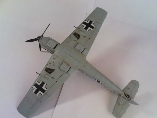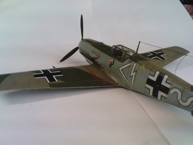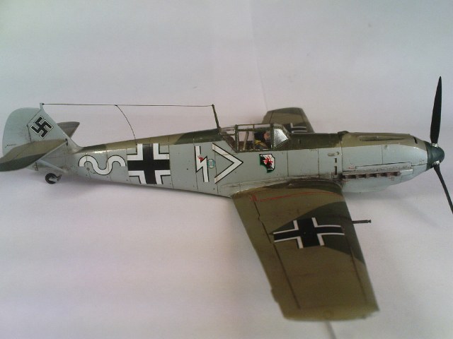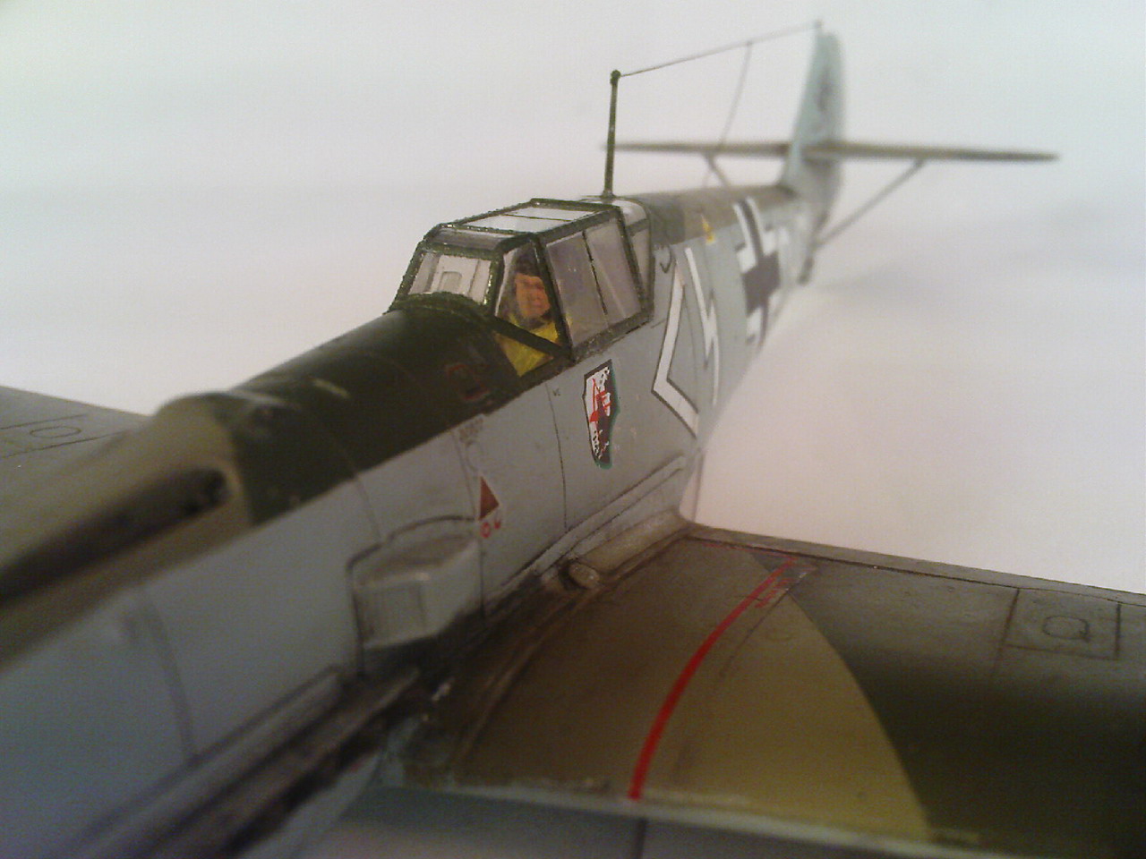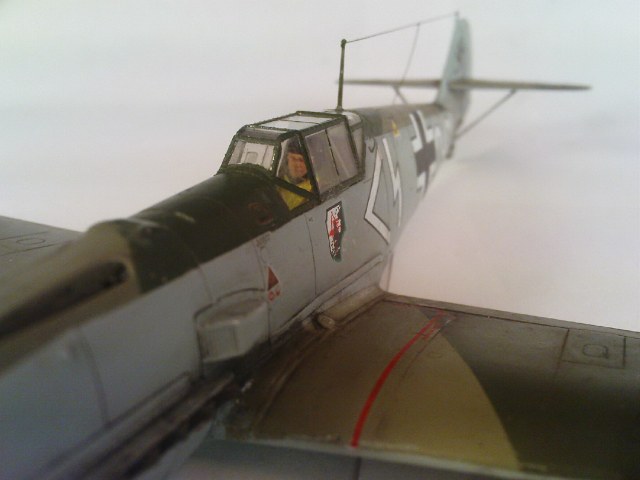 В свое время я испортил, как мне тогда казалось безвозвратно, эту модель. По прошествии некоторого времени появилось желание реанимировать её. Процесс реанимации происходил долго и мучительно. Пришлось сделать шасси убранным, вновь изготовить подпорки стабилизаторов, фонарь кабины переделанный от другой модели мессера. На мой взгляд: реанимация прошла вполне успешно.