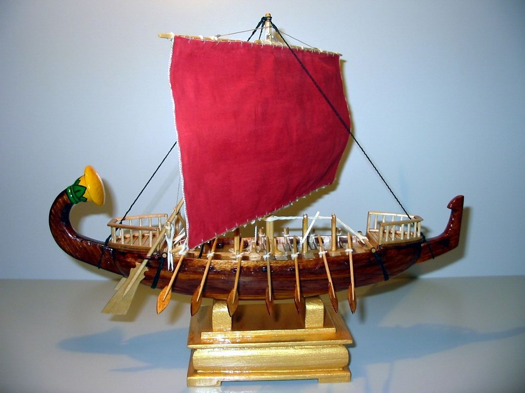 Пара конструктивных замечаний. Про набалдашник на корме сказали. Думаю, что невинно-белый такелаж, равно как и угольно черный в Египте тогда только снился. Египтяне, хоть и африкокосы, но што такое блоки уже знали. Чуть потемнее бы отморить весла, палубу, мачту и реи, уж больно "липово-березовые" для Нила.