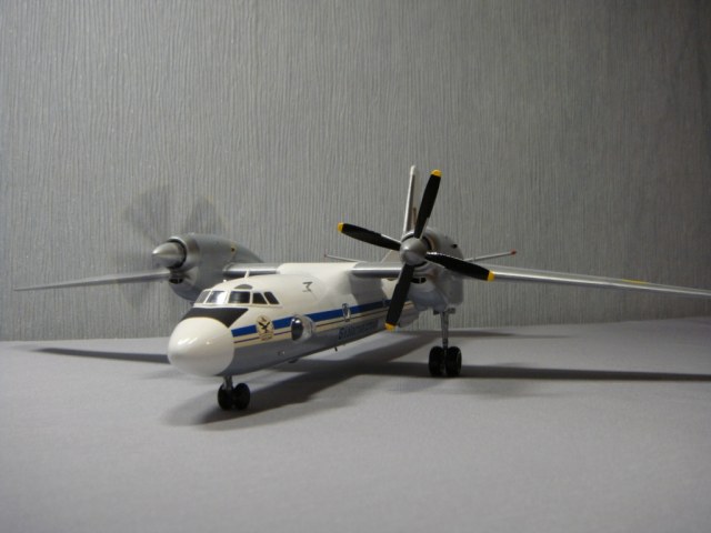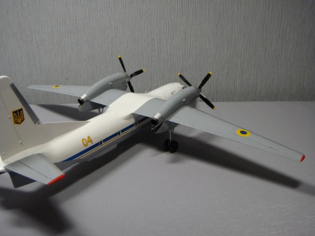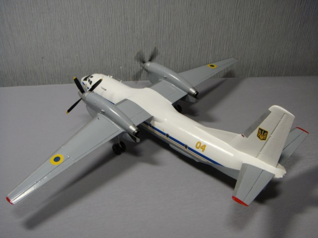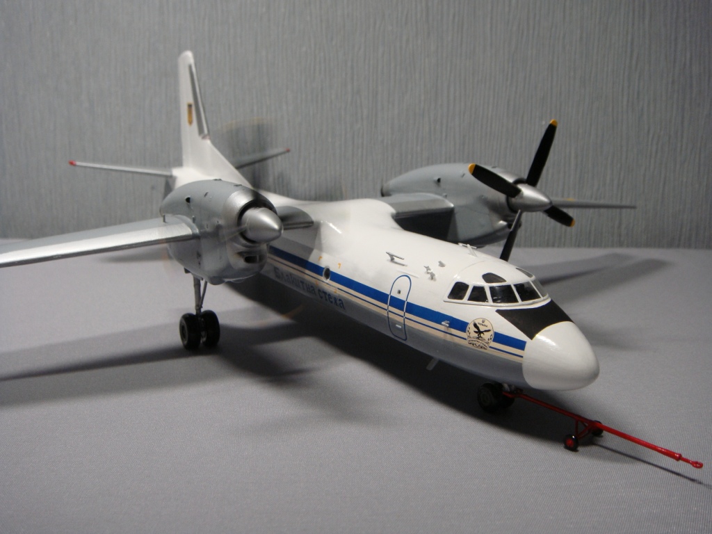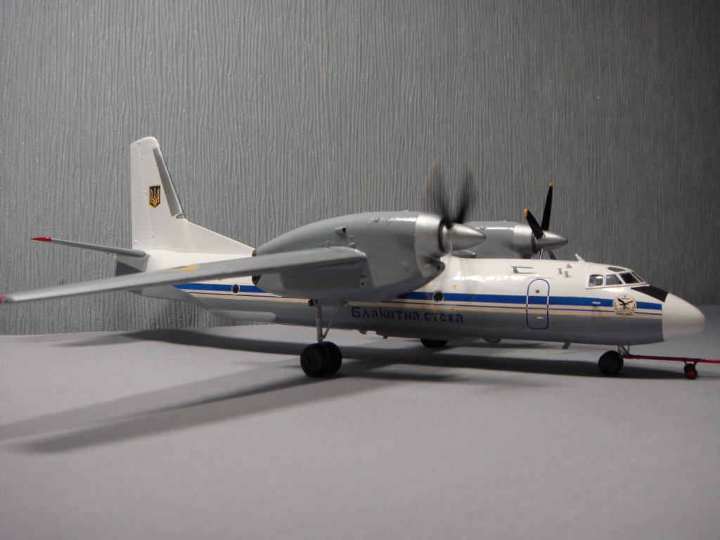 Такого борта в авиаэскадрильи «Блакитна стежа» не существует, только Ан-26 и Ан-30. Декали позаимствовал от Ан-26, родные от Ан-32 рассыпались трещинами в воде, но самолет украинский и, думаю, за неимением выбора, украинские декали не смотрятся нелепостью. Что касается сборки, А-модел как А-модел, поточил, попилил... Никто больше такой самолет не выпускает в 72-м масштабе, да здравствует А-модел. Даже водило дали (буксировочную штангу), буду искать к нему аэродромный тягач КрАЗ-255Б 1/72 от ICM. Красил кистью автонитрокрасками Vika.