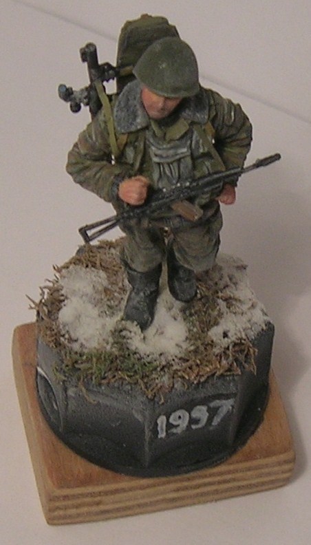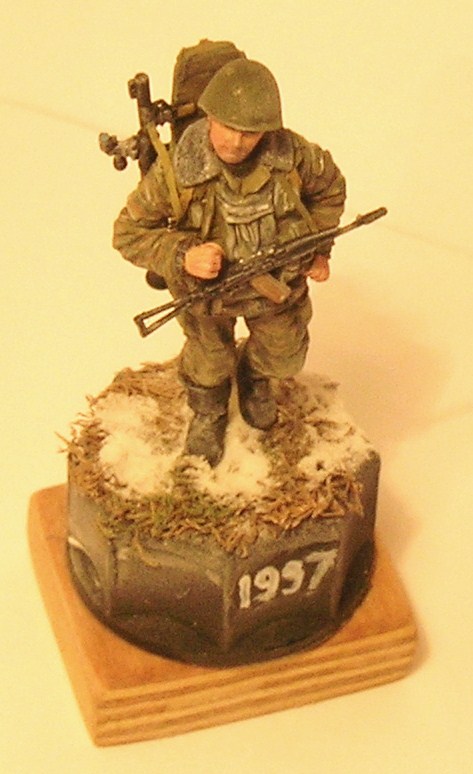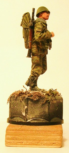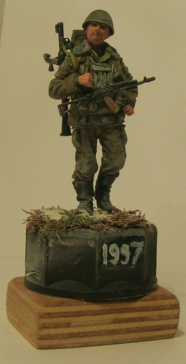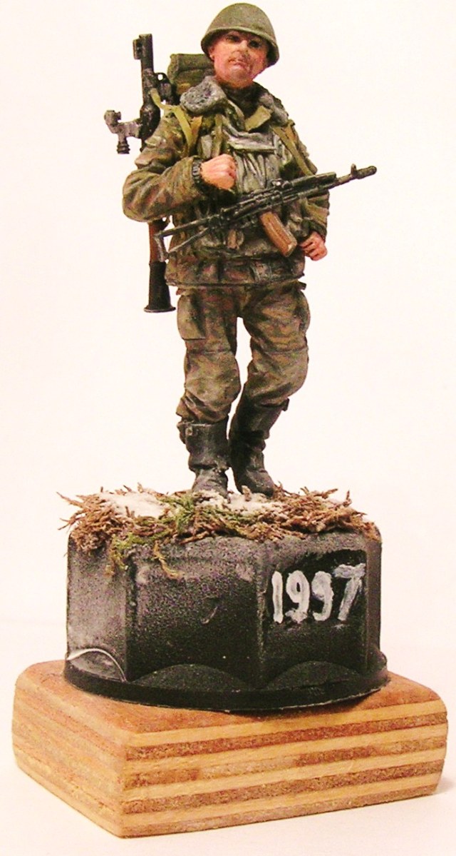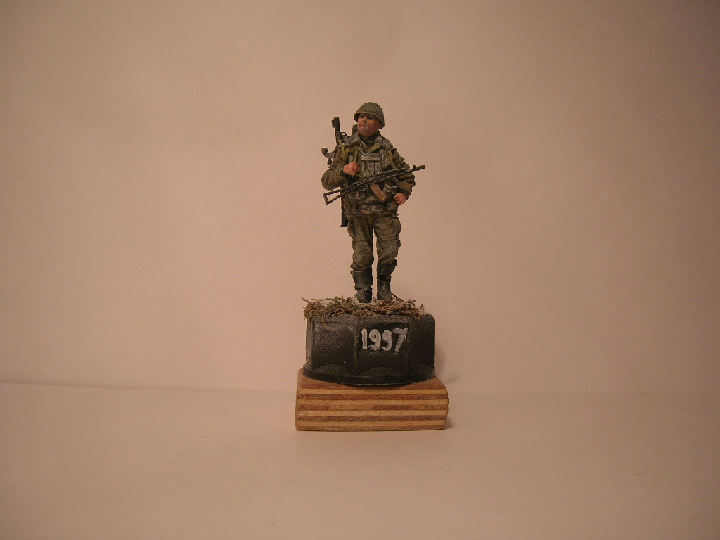 Расписывал акрилом "звезда". От себя добавил ремни из фольги, на автомат и рпг. После покраски задул матовым лаком "звезда".
