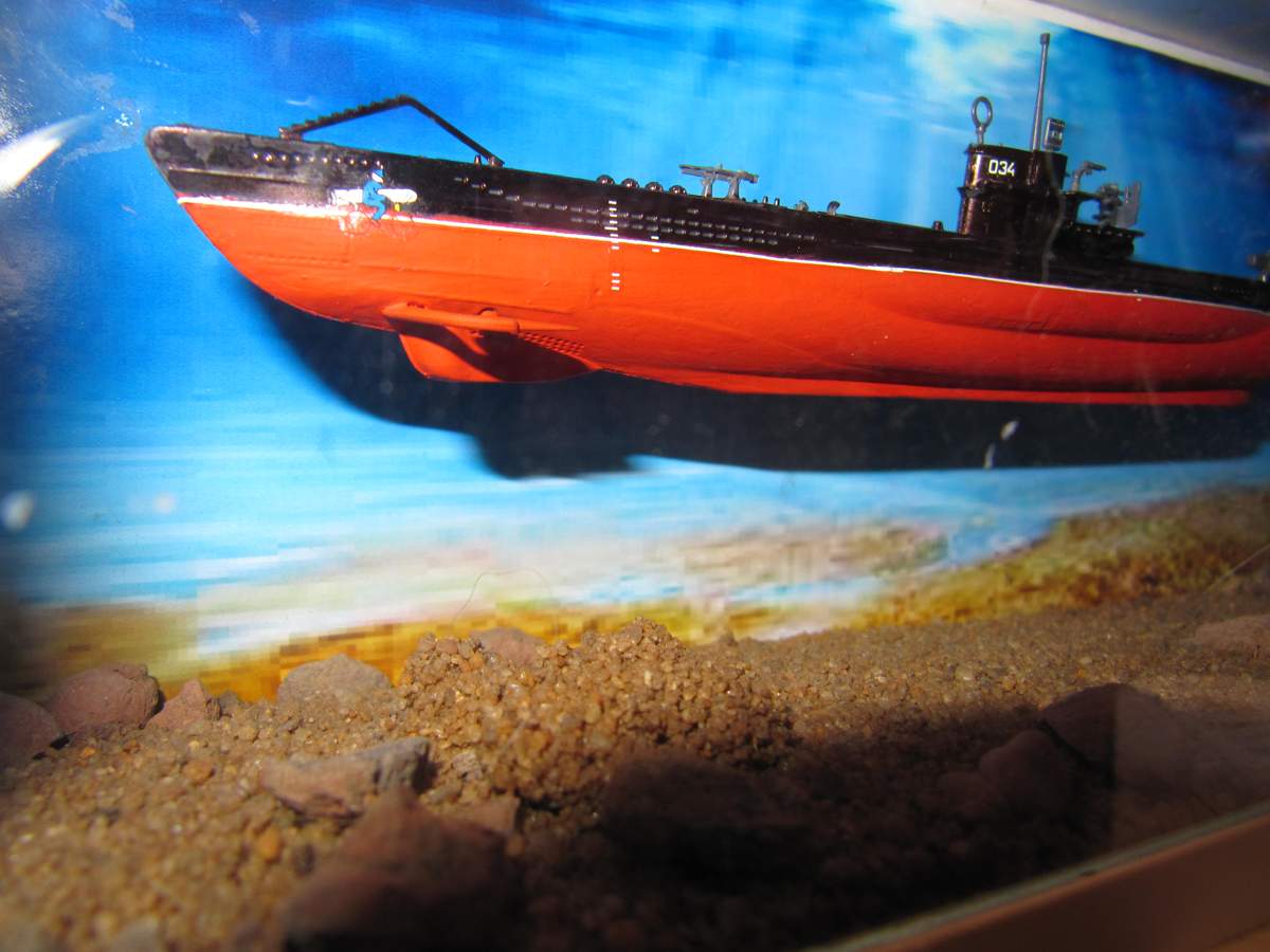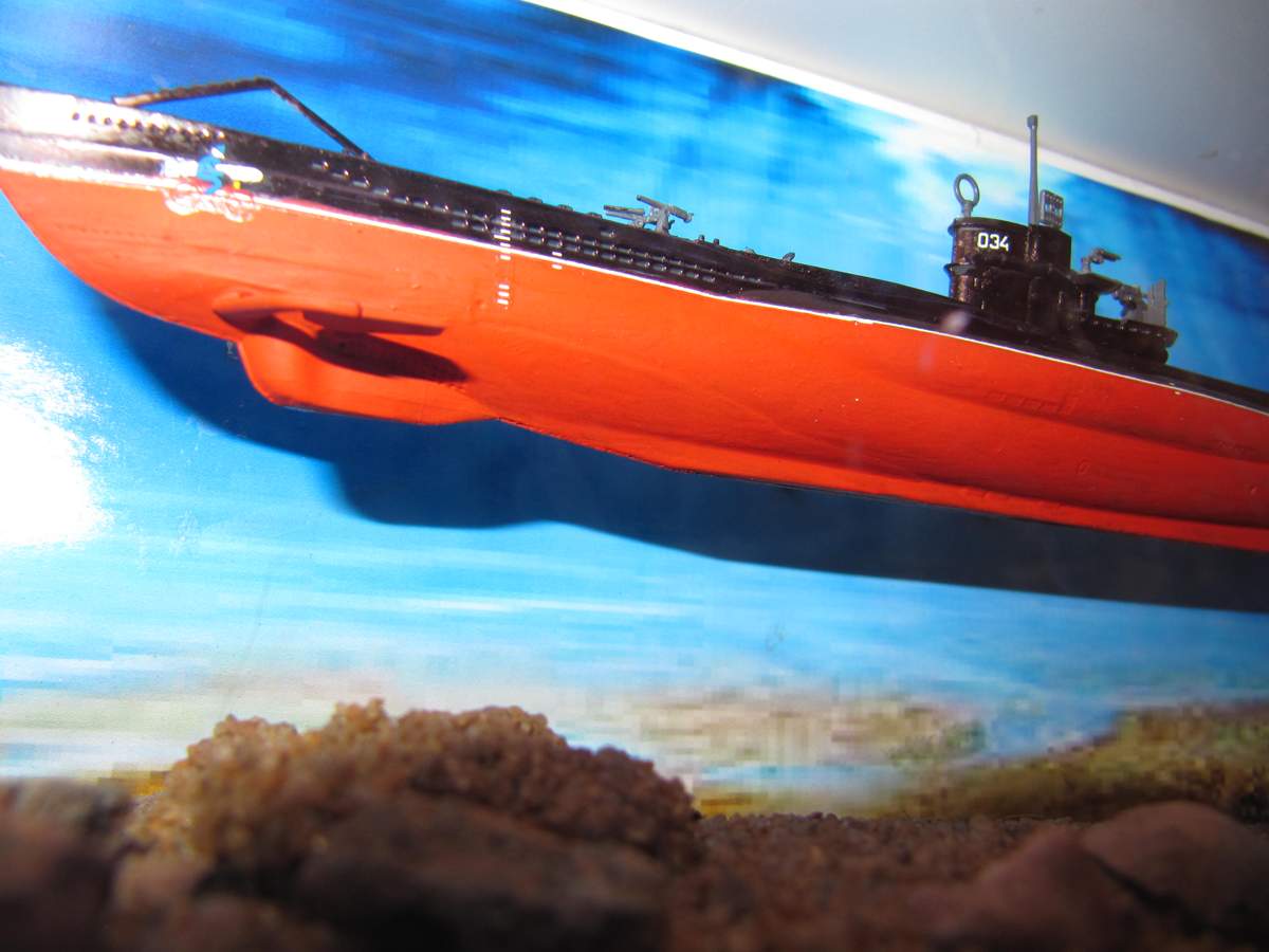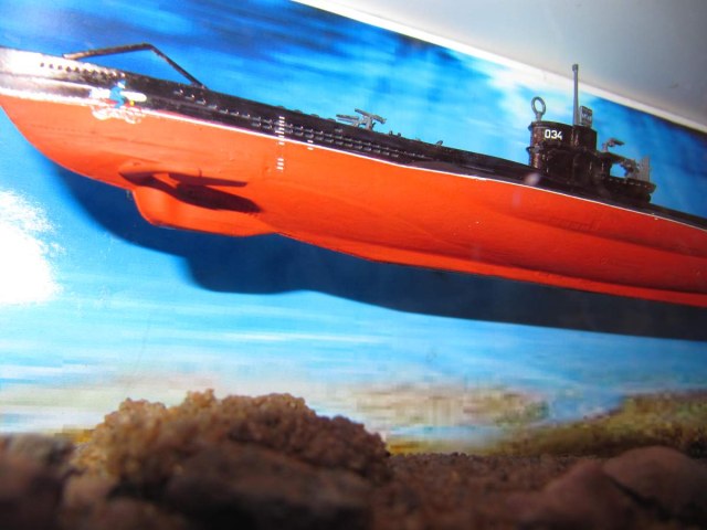 Я могу понять неровную покраску кистью - это может быть как-то оправдано отсутствием возможности купить аэр и нормальные краски. Я не говорю, что надо обложиться книжками, и изучать особенности именно U552 и строить модель исключтельно по заводским чертежам и фотографиям реальной лодки. Но хотя бы собрать пластик , покрасить и приклеить декали по инструкции можно ведь было? А у вас, извините, при советской окраске и белой ватерлинии немецкий велосипелист с торпедой на нос, как на истребитель, приклеен. У Цвиллингов (это 2-х ствольные 20мм зенитки) ствол приклеен поверх казенника. Это что? авторское видение? или вы считаете, что немцы вооружали ПЛ зенитными двухстволками, и в подводном положении они закреплялись в "переломленном" виде, что бы вода беспрепятственно протекала через стволы и не снижала гидродинамического сопротивления лодки? Что за батарея зениток на носу? почему 88мм пушка на корме? Это не японская лодка, у семерок 88мм были перед рубкой, но на ранних модификациях. А у вас модель 7с41, и там 88ммпушки, как и сетереза, быть не должно! Но коробочка с фоном и дном получилась действительно симпатичной